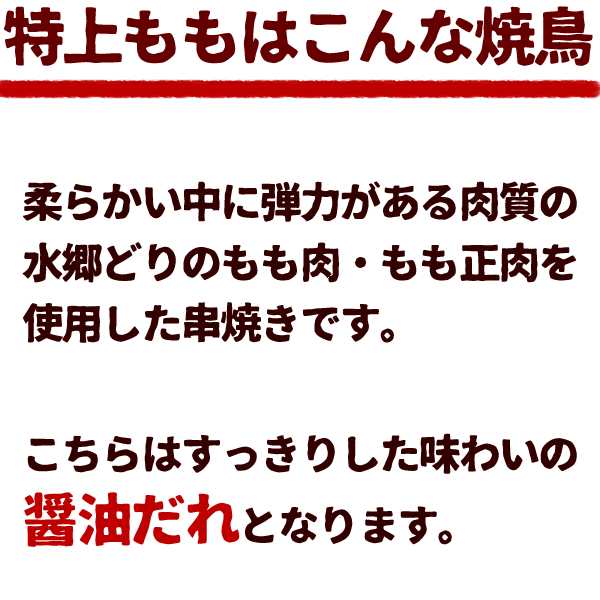 焼き鳥 特上もも焼き鳥(5本入) 秘伝の醤油ダレ 商品内容 特上もも焼き鳥 5本入[醤油タレ小袋付] 串の長さ15cm >>>秘伝タレ(小袋10g)の追加はコチラから 商品形態 通常冷蔵発送いたします。>>>配送温度についての注意事項<<<※冷凍商品と同梱の場合は冷凍でお届けいたします。※冷蔵・冷凍のご希望がある場合はコメント欄にご記入下さい。※当店からの確認メールで配送温度をご確認下さい。 営業日 追加注文OK!同梱で送料がお得!オトクです! 発送からお届けまでの日数はコチラからご確認いただけます。⇒ クリック ※商品発送でお急ぎの場合はお電話でご連絡ください。できる限り対応させていただきます。 【通販専用電話番号】0478-83-2347 召し上がり方袋のまま、沸騰したお湯に5分間いれてください。 タレ焼きの場合は、湯煎した後に袋から取り出し、タレをかけてお召し上がりください。賞味期限冷蔵で10日 冷凍で90日 到着後、なるべくお早めにお召し上がりください。 原材料 原材料はコチラからご確認ください。⇒ 原材料一覧 製造者 株式会社須田本店 千葉県香取市小見川270 ギフト・お中元・お歳暮・父の日・母の日・敬老の日・クリスマスギフトなどにどうぞ。 焼き鳥 特上もも焼き鳥(5本入) 秘伝の醤油ダレ ■人気 ランキング1位 の 食品 食べ物 グルメ は様々な贈り物にも大好評■ 【内祝い・お返し・お祝い】 出産内祝い 結婚内祝い 新築内祝い 快気祝い 入学内祝い 結納返し 香典返し 引き出物 結婚式 引出物 法事 引出物 お礼 謝礼 御礼 お祝い返し 成人祝い 卒業祝い 結婚祝い 出産祝い 誕生祝い 初節句祝い 入学祝い 就職祝い 新築祝い 開店祝い 移転祝い 退職祝い 還暦祝い 古希祝い 喜寿祝い 米寿祝い 退院祝い 昇進祝い 栄転祝い 叙勲祝い 【法人向けギフト】 ゴルフコンペ パチンコ 景品 粗品 ご進物 プレゼント お土産 手土産 プチギフト お見舞 ご挨拶 引越しの挨拶 誕生日 バースデー お取り寄せ 開店祝い 開業祝い 周年記念 記念品 おもたせ 贈答品 挨拶回り 定年退職 転勤 来客 ご来場プレゼント ご成約記念 表彰 父 お父さん 母 お母さん 兄弟 姉妹 子供 おばあちゃん おじいちゃん 奥さん 彼女 旦那さん 彼氏 友達 仲良し 先生 職場 先輩 後輩 同僚 取引先 お客様 20代 30代 40代 50代 60代 70代 80代 甘くない 花以外 【季節のギフト】 1月 お年賀 正月 成人の日 2月 節分 旧正月 バレンタインデー 一人暮らし 3月 ひな祭り ホワイトデー 春分の日 卒業 卒園 お花見 春休み 4月 イースター 入学 就職 入社 新生活 新年度 春の行楽 5月 ゴールデンウィーク こどもの日 母の日 6月 父の日 7月 七夕 お中元 暑中見舞 8月 夏休み 残暑見舞い お盆 帰省 9月 敬老の日 シルバーウィーク 10月 孫の日 運動会 学園祭 ブライダル ハロウィン 文化祭 11月 七五三 勤労感謝の日 ブラックフライデー 12月 お歳暮 クリスマス 大晦日 冬休み 寒中見舞い 楽天スーパーSALE スーパーセール お買い物マラソン ■焼き鳥:特上もも焼き鳥はこんな焼鳥■ ・柔らかい中に弾力がある肉質の水郷地鶏のもも肉・もも正肉を使用した串焼きです。タレは秘伝の醤油ダレ。 ・鶏肉専門店の職人が1本1本、手刺しして、心込めて手焼きしているので、産地直送の美味しい焼き鳥をお楽しみいただけます。 ・鳥串、鶏串は居酒屋メニューの定番ですが、水郷のとりやさんの焼鳥なら、ご家庭で簡単に晩酌おつまみが楽しめます。夕飯のおかずのお手軽、時短メニューとしても好評です。 ・温めるだけでお召し上がりいただけますが、七輪で炭火で軽く炙ったり、魚焼きコンロで軽く焼いたりしても美味しいです。調理済みなのでレンジ調理も可能です。 ・オードブルとして出せば、男性、女性を問わず、子供やお年寄りも笑顔で、家飲み、宅飲みが盛り上がります! ・お花見やBBQ、キャンプには生の焼き鳥串もご用意しております。屋台の焼き鳥気分で自分で焼いちゃいましょう!業務用・冷凍品のご用意もございます。 yakitori ヤキトリ 【RCP】 お支払い方法は? 送料はいくら? 荷物の包装は? 日時指定はできるの? まだまだあります!やきとりコーナーはこちらをクリック!>>>他にもあります!昔ながらの醤油ダレ焼き鳥!!ジャンボ焼はこちら!!むね皮焼き鳥はこちら!!皮焼きはこちら!!