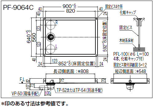 LIXIL (リクシル) 洗濯機パン 900X640サイズ PF-9064C/NW1-BL 排水穴位置選べます。排水トラップは別途