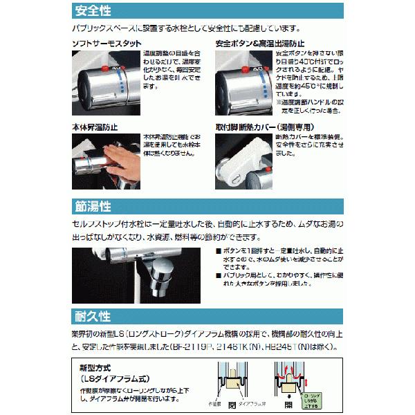 LIXIL・INAX パブリックバス水栓 ヴィラーゴシリーズ 【出品商品】 品番:BF-2142TSD セルフストップ付洗い場専用 サーモスタット付シャワーバス水栓 シャワー側・吐水口側共にセルフストップ付 一定量吐水した後、自動的に止水するセルフストップ機能付。 ホテルや旅館、公衆浴場などに最適です。 水栓金具は美しい高級感のあるオールメッキタイプ。 見やすく、大きな操作ボタンで、パブリック空間にピッタリです。 エコフルスプレーシャワー、呼び径13ミリ 吐水口長さ80ミリ 吐水口位置:壁面より179ミリ 吐水口は固定式です。 シャワー側・吐水口側共にセルフストップ付 送料は無料です。 沖縄県・離島は送料別途1,000円かかります。 通常2~3営業日での出荷になります。