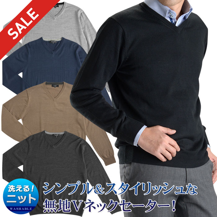 【スーパーSALE 10%OFF】 ニット セーター 天竺 Vネック 洗える ウール混 ビジネス カジュアル 秋 冬 無地 メンズ ハイゲージニット ATTU UOMO ウォッシャブル 春 ギフト プレゼント クリスマス