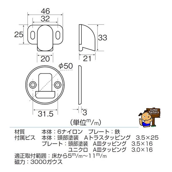 アイワ金属 マグネ戸当り 面付型 マグネ戸当たり ドアストッパー