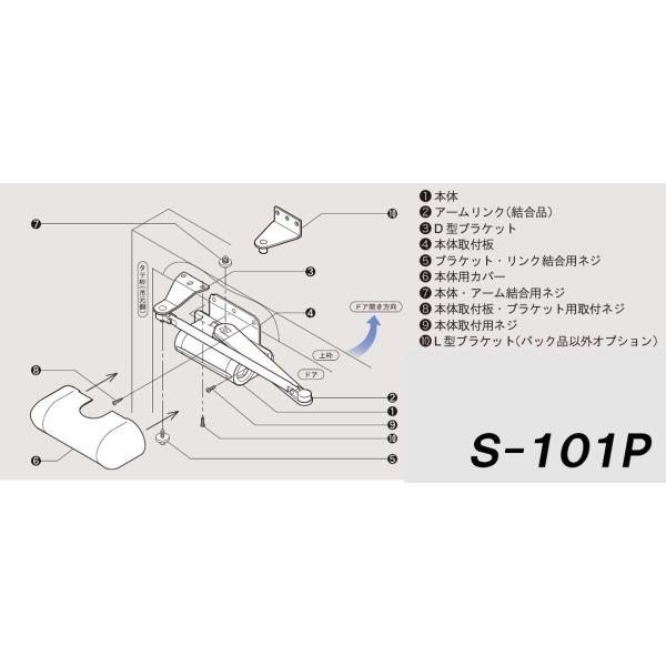 RYOBI社製、室内木製建具用のドアクローザーです。 ドアのバタン!という音から解消されます また、ストップ機能が通常は付いていますが、この商品は ”ストップ機能なし”のタイプです。 取り付ければ、ドアの開閉が制御され、ドアを開けると勝手に閉まってくれます。 冷暖房を効果的に利用するためには、ドアの閉め忘れをなくしましょう! 付属ブラケット:D型ブラケット(L型ブラケットは付属しません) 適用ドア:木製 W900×H1800,重量15〜30Kg 内付外開き、左右開き兼用 カラー/ホワイト.アイボリー.ライトブラウン.チョコ.ブラック S-101P 101P ストップなし ストップ無し ストップ無 ストップ機能 ストップ機能なし