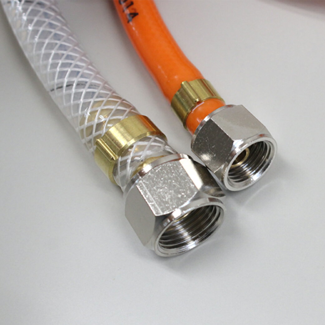 エアーホース ( ウレタン ) と塗料ホース ( ウレタン ) とが一体にセットされたホースです。 スプレーガンと圧送タンクをつなぐ際にご使用ください。 両ホースに金具がセットされています。 なお、この商品は明治加圧タンク【P-2A】用のホースです。 ※ホース下の画像のように金具が付いています。 <仕様> エアホース 塗料ホース 素材 ウレタン サイズ ( 内径×外形 mm ) 6.5×10 7.5×10 常用圧力 ( MPa ) 1.5 0.5 ホースジョイントユニバーサル G1/4金具付 G3/8金具付 ホースバンド MH-4 メーカー:(株)明治機械製作所 ※こちらの商品は取寄せになります※