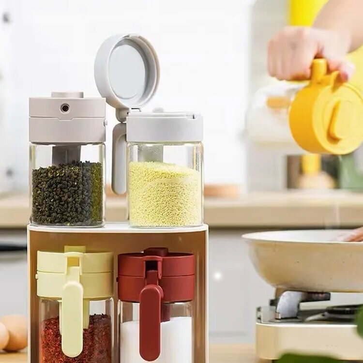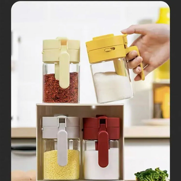 2個セット 調味料ポット調味料入れ 3way 調味料ポット 調味缶 スパイスボトル 塩 砂糖入れ コショウ入れ粉ふり機能 スプーン内蔵 耐熱ガラス 湿気防止 洗いやすい おしゃれ 調味料入れセット コショウ入れ 調味料ケース 保存容器