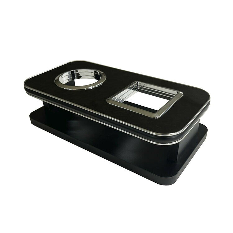 製品仕様 商品名 サイドテーブル ドリンクホルダ付 適合車種 UD 17(パーフェクト)クオン(2017年4月〜現行) クオン(2005年1月〜2017年4月) フレンズコンドル(2010年11月〜2017年8月) 商品コード ダークウッド / 17QN130-274-268 ピアノブラック / 17QN130-MR6400-268 ブラックレザー / 17QN130-LP6400-268 ブラウンストーン / 17QN130-10236-268 ライトウッド / 17QN130-10046-268 カラー ベース部分はマットブラック。ドリンクホルダ部分はお好みのカラーを選べます。 ダークウッド:落ち着いた木目模様とぜいたくな光沢が、高級家具のイメージ。(光沢色) ピアノブラック:グランドピアノのような、光沢ある漆黒。シックな上品さを醸し出す。(光沢色) ブラックレザー:レザー調の艶消しブラック。派手さを好まない大人好みの色。(マット色) ブラウンストーン:茶を基調とした、悠久の時をたたえる大理石を思わせるテクスチャ。(マット色) ライトウッド:ベージュ調の明るい木目模様が、車内を明るい雰囲気に彩る。(光沢色) 材質 パーティクルボード、ポリ化粧板、メッキリング 商品について 運転席横(サイドブレーキボックス後方)に設置する、ドリンクホルダ付のミニテーブルユニットです。 シンプルなデザインとしっかりしたつくりに加え、ドリンクホルダ部分の色を選ぶことができるので、車内空間にオリジナリティを添えられます。 サイズ 商品最大寸法:約 200 x 360 x 83(高さ) mm 製品セット内容 本体(両面テープ付)、取付説明書 取付方法 取付面を脱脂して、両面テープで本体を固定すれば完了です。 バリエーション ⇒サイドテーブル 購入前のご注意(必ずご確認ください) 製品について ・キャブチルト時は落下する恐れがありますので十分ご注意ください。 <商品の不具合の場合> 万が一不具合のある場合は不具合箇所の画像をお送りいただければ商品代金、送料、手数料の全額をご返金致します。商品到着後7日以内にご連絡ください。 発送について <納期> 3営業日以内に発送いたします。 <送料> 無料 <運送会社> ヤマト運輸 / 西濃運輸 / 松岡満運輸 For クオン オーバーヘッドコンソール [ハイルーフ車専用] 頭上の空間を収納スペースに変える、人気アイテム。 寝台ウィンドウパネル 2.5mm厚の板でしっかり遮光。カーテンよりもシンプルで車内をスッキリと演出。 (店内検索用) ブランドCODE UQN 車種CODE UQNM1 / UQNM2 分類CODE TCAT1 / TCAT8