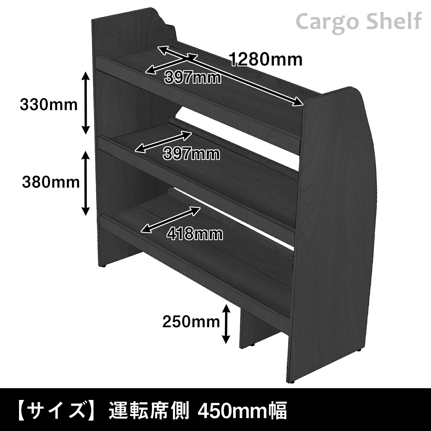 200系 ハイエース S-GL 標準ボディ( ワイドボディ は設置のみ可 )カーゴシェルフ 450mm幅 ブラック | トヨタ ロング ボディ 木製 棚 荷室 収納 内装 カスタム 改造 ラック 職人 塗装 キット トランポ