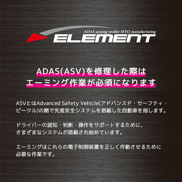 ADAS(ASV)を修理した際はエーミング作業が必須になります。 ASVとはAdvanced Safety Vehicle(アドバンスド・セーフティ・ビークル)の略で先進安全システムを搭載した自動車を指します。 ドライバーの認知・判断・操作をサポートするために、さまざまなシステムが搭載され始めています。 エーミングはこれらの電子制御装置を正しく作動させるために必要な作業です。 ●リフレクター専用タイプ ●トヨタ車用 スタンド高さ:1400mm リフレクター材質:アクリル板(片面ミラーシート) リフレクターミラー部サイズ:W120xD57xH140mm 【セット内容】 ・ミリ波用リフレクター ・垂直出し下げ振り ・スタンド ・レーザー距離計用ターゲット ・BOSCH(ボッシュ) デジタルレーザー距離計 Zamo ※適合車種はお答えできかねます ※ディーラー等からの資料・市販のエーミングデータブックにてご判断下さい ※専用取付設計のため、他のレーザーは取付できません 【製品安全4法に伴う記載】 届出事業者名:ボッシュ株式会社 登録検査機関名称:UL Japan PSマーク種類:PSCMTO(ムサシ) MTO PRO ミリ波レーダー測定用リフレクタースタンド スタンダード トヨタ車用 TMLS001KMTO(ムサシ) MTO PRO エーミングターゲットスタンド スタンダード トヨタ車用 TMLS002NTMTO(ムサシ) MTO PRO ミリ波レーダー測定用リフレクター&エーミングターゲットスタンド スタンダード トヨタ車用 TMLS003NTMTO(ムサシ) MTO PRO ミリ波レーダー測定用リフレクタースタンド デラックス トヨタ車用 TMLS004KMTO(ムサシ) MTO PRO エーミングターゲットスタンド デラックス トヨタ車用 TMLS005NTMTO(ムサシ) MTO PRO ミリ波レーダー測定用リフレクター&エーミングターゲットスタンド デラックス トヨタ車用 TMLS006NT