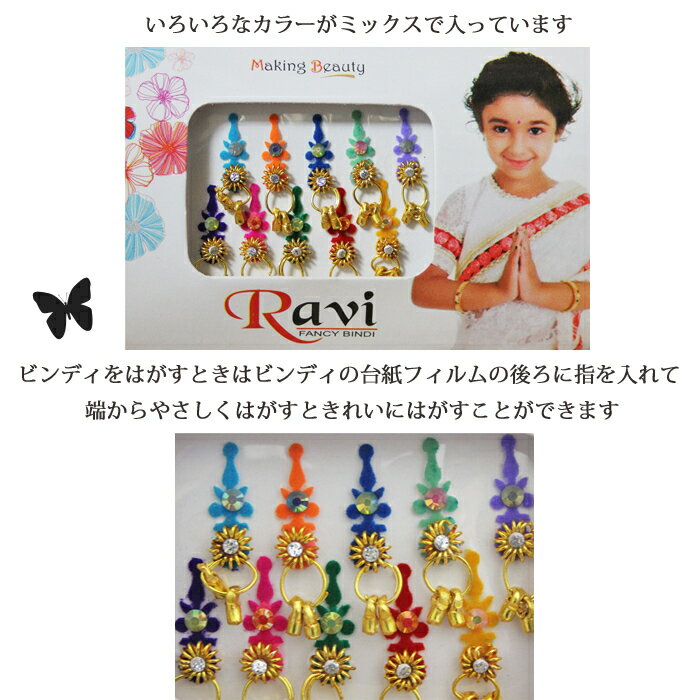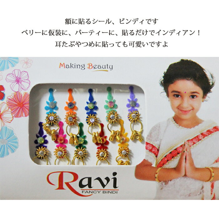 商品情報 素材 プラスチック他色 マルチカラーモニターの発色によって色が違って見える場合がございます。サイズ ケースの大きさ 約7×11cmビンディ:全長(ベル含) 約2.6cm全長(ベル無) 約1.7cm幅 約0.6cm注意事項 こちらはインド製です。手作りのため画一的なパターンではありません。1枚1枚すこし円が歪んでいたり色などが微妙に異なります。これらもインドの特性としてご了承くださるようお願いいたします。こちらはミックスカラーです。写真とカラーの配色等が違う場合がございます。どうぞご了承の上お買い求めください。キラキラ ビンディ:フラワー 飾り付き 丸 / ビンディー ベリーダンス インド サリー アクセサリー 民族衣装 ボディ シール メール便でお送りできます! 2