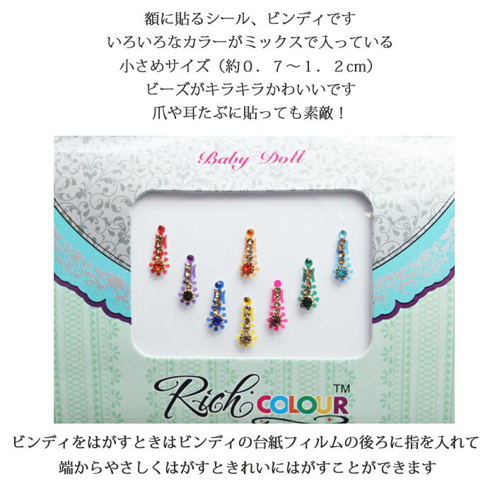 商品情報商品説明6種類からお選びください。額に貼るシール、ビンディです。いろいろなカラーがミックスで入っている小さめサイズです。ビーズがキラキラかわいい。ベリーに仮装に、パーティーに、貼るだけでインディアン!耳たぶやつめに貼っても可愛いですよ。ビンディをはがすときはビンディの台紙フィルムの後ろに指を入れて端からやさしくはがすときれいにはがすことができます。素材プラスチック他サイズケースの大きさ 約7×9.5cm1:全長 約1.2cm幅 約0.5cm2:全長 約1.2cm幅 約0.5cm3:全長 約1.2cm幅 約0.4cm4:全長 約1cm幅 約0.6cm5:全長 約0.8cm幅 約0.3cm6:全長 約0.7cm幅 約0.3cm注意事項こちらはインド製です。手作りのためすこしビーズがずれていたりすることがあります。写真とビーズの色の配色が異なる場合がございます。これらもインドの特性としてご了承くださるようお願いいたします。モニターの発色によって色が違って見える場合がございます。どうぞご了承ください。キラキラビンディ:ミックス カラフル ミニ 約0.7〜1.2cm / ビンディー ベリーダンス インド サリー アクセサリー 民族衣装 ボディ シール デコ ポイント消化 メール便でお送りできます! 6種類からお選びください。 2
