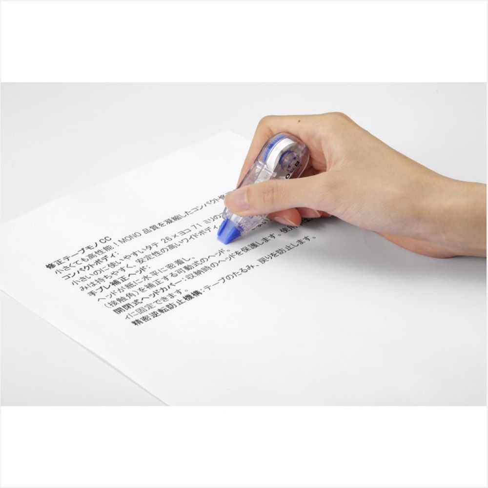 商品名トンボ 修正テープ モノCC6 内容量1個 商品説明(製品の特徴)・小さいのに使いやすいコンパクトサイズ。厚みは持ちやすく、安定性の高いワイドボディ。・ヘッドが紙に水平に密着し、密着不良を起こさないよう、手ブレ (接触角)を補正する可動式の手振れ補正ヘッド。・開閉式ヘッドカバーで収納時のヘッドを保護。(使用中はボディに固定。)・精密逆転防止機構でテープのたるみ、戻りを防止。 主な製品仕様・テープ幅:6mm・容量:6m・材質:再生プラ:73%プラスチックの再利用:72%・環境対応商品エコマーク認定商品 第16112013号グリーン購入法適合商品GPNエコ商品ねっと掲載・ブリスターパック入り 安全に関する注意・幼児の手の届かないところにおいてください。・紙への修正以外の目的には使用しないでください。 問合せ先トンボ鉛筆株式会社 お客様相談室0120‐834198(受付時間/土日・祝日・年末年始・夏季休暇を除く 9:00〜12:00/13:00〜17:00) 製造販売会社(メーカー)トンボ鉛筆株式会社 販売会社(発売元)トンボ鉛筆株式会社 原産国ベトナム 広告文責株式会社サンドラッグ/電話番号:0120‐009‐368 JANコード4901991704372 ブランドモノ修正テープ ※お届け地域によっては、表記されている日数よりもお届けにお時間を頂く場合がございます。