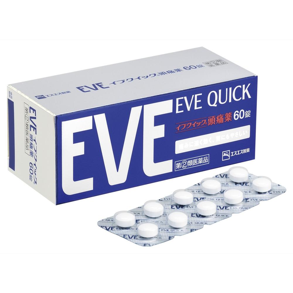 【注意!】こちらの商品は医薬品です。以下の文章を良く読み、設問に必ずお答え下さい。※医薬品は使用上の注意をよく読み用法・用量を守って正しくお使い下さい。■商品説明(製品の特徴) イブクイック頭痛薬は、頭痛にしっかり効くよう設計された製剤です。イブプロフェンをはじめ、その鎮痛効果を高めてくれるアリルイソプロピルアセチル尿素・無水カフェイン、さらに、胃粘膜を保護するとともにイブプロフェンの吸収を促進する成分である酸化マグネシウムを配合しました。頭痛に速く効いて、胃にやさしい頭痛薬です。■使用上の注意 ■してはいけないこと(守らないと現在の症状が悪化したり、副作用・事故が起こりやすくなります。)1.次の人は服用しないでください (1)本剤又は本剤の成分によりアレルギー症状を起こしたことがある人。 (2)本剤又は他の解熱鎮痛薬、かぜ薬を服用してぜんそくを起こしたことがある人。 (3)15才未満の小児。 (4)出産予定日12週以内の妊婦。2.本剤を服用している間は、次のいずれの医薬品も服用しないでください 他の解熱鎮痛薬、かぜ薬、鎮静薬、乗物酔い薬3.服用後、乗物又は機械類の運転操作をしないでください (眠気等があらわれることがあります。)4.服用前後は飲酒しないでください5.長期連用しないでください■相談すること1.次の人は服用前に医師、歯科医師、薬剤師又は登録販売者に相談してください (1)医師又は歯科医師の治療を受けている人。 (2)妊婦又は妊娠していると思われる人。 (3)授乳中の人。 (4)高齢者。 (5)薬などによりアレルギー症状を起こしたことがある人。 (6)次の診断を受けた人。 心臓病、腎臓病、肝臓病、全身性エリテマトーデス、混合性結合組織病 (7)次の病気にかかったことのある人。 胃・十二指腸潰瘍、潰瘍性大腸炎、クローン病 2.服用後、次の症状があらわれた場合は副作用の可能性があるので、直ちに服用を中止し、この説明書を持って医師、薬剤師又は登録販売者に相談してください [関係部位:症状] 皮膚:発疹・発赤、かゆみ、青あざができる 消化器:吐き気・嘔吐、食欲不振、胃部不快感、胃痛、口内炎、胸やけ、胃もたれ、胃腸出血、腹痛、下痢、血便 精神神経系:めまい 循環器:動悸 呼吸器:息切れ その他:目のかすみ、耳なり、むくみ、鼻血、歯ぐきの出血、出血が止まりにくい、出血、背中の痛み、過度の体温低下、からだがだるい まれに下記の重篤な症状が起こることがあります。その場合は直ちに医師の診療を受けてください。 [症状の名称:症状] ショック(アナフィラキシー):服用後すぐに、皮膚のかゆみ、じんましん、声のかすれ、くしゃみ、のどのかゆみ、息苦しさ、動悸、意識の混濁等があらわれる。 皮膚粘膜眼症候群(スティーブンス・ジョンソン症候群)、中毒性表皮壊死融解症:高熱、目の充血、目やに、唇のただれ、のどの痛み、皮膚の広範囲の発疹・発赤等が持続したり、急激に悪化する。 肝機能障害:発熱、かゆみ、発疹、黄疸(皮膚や白目が黄色くなる)、褐色尿、全身のだるさ、食欲不振等があらわれる。 腎障害:発熱、発疹、尿量の減少、全身のむくみ、全身のだるさ、関節痛(節々が痛む)、下痢等があらわれる。 無菌性髄膜炎:首すじのつっぱりを伴った激しい頭痛、発熱、吐き気・嘔吐等の症状があらわれる。(このような症状は、特に全身性エリテマトーデス又は混合性結合組織病の治療を受けている人で多く報告されている。) ぜんそく:息をするときゼーゼー、ヒューヒューと鳴る、息苦しい等があらわれる。 再生不良性貧血:青あざ、鼻血、歯ぐきの出血、発熱、皮膚や粘膜が青白くみえる、疲労感、動悸、息切れ、気分が悪くなりくらっとする、血尿等があらわれる。 無顆粒球症:突然の高熱、さむけ、のどの痛み等があらわれる。3.服用後、次の症状があらわれることがあるので、このような症状の持続又は増強が見られた場合には、服用を中止し、この説明書を持って医師、薬剤師又は登録販売者に相談してください 便秘、眠気4.5〜6回服用しても症状がよくならない場合は服用を中止し、この説明書を持って医師、歯科医師、薬剤師又は登録販売者に相談してください■効能・効果 ○頭痛・肩こり痛・歯痛・月経痛(生理痛)・咽喉痛・関節痛・筋肉痛・神経痛・腰痛・抜歯後の疼痛・打撲痛・耳痛・骨折痛・ねんざ痛・外傷痛の鎮痛○悪寒・発熱時の解熱■用法・用量 次の1回量を1日3回を限度とし、なるべく空腹時をさけて水又はぬるま湯で服用してください。服用間隔は4時間以上おいてください。[年齢:1回量]成人(15才以上):2錠15才未満:服用しないこと[用法・用量に関連する注意](1)用法・用量を厳守してください。(2)錠剤の取り出し方 錠剤の入っているPTPシートの凸部を指先で強く押して裏面のアルミ箔を破り、取り出してお飲みください。 (誤ってそのまま飲み込んだりすると食道粘膜に突き刺さるなど思わぬ事故につながります。)■成分・分量 2錠中イブプロフェン 150mg、酸化マグネシウム 100mg