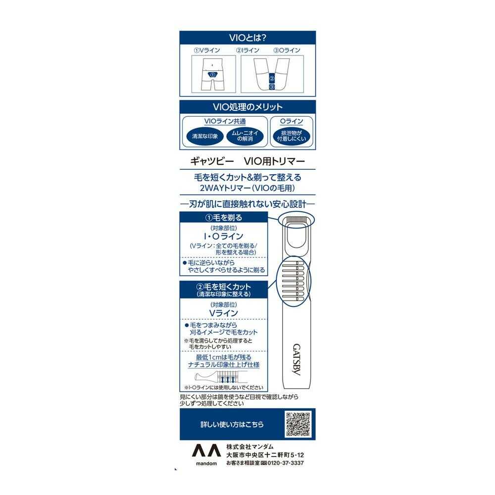 ■商品説明(製品の特徴) 直接肌に触れない安心設計&短くカットも剃るもこれ1本。VIOを簡単に処理できる専用トリマー。ギャツビー/GB/VIO/トリマー■使用上の注意 ●刃物ですので取り扱いには十分注意してください。●替刃式ではありません。けがや破損の原因となりますので絶対に分解しないでください。●落としたり強い衝撃を与えないでください。刃こぼれの原因となり肌を傷めるおそれがあります。●ご使用後はよくすすぎ、水気を切ってから乾燥した場所に保管してください。●カミソリ以外の用途に絶対に使用しないでください。●お肌の状態が悪いときはご使用にならないでください。●乳幼児や認知症の方などの誤使用等を防ぐため置き場所にご注意ください。■問合せ先 株式会社マンダム お客さま相談室0120‐37‐3337平日 9:30〜17:00(土・日・祝日を除く)■製造販売会社(メーカー) 株式会社マンダム■広告文責 株式会社サンドラッグ電話番号:0120‐009‐368■JANコード 4902806127874■ブランド ギャツビー※パッケージ・デザイン等は、予告なしに変更される場合がありますので、予めご了承ください。※お届け地域によっては、表記されている日数よりもお届けにお時間を頂く場合がございます。