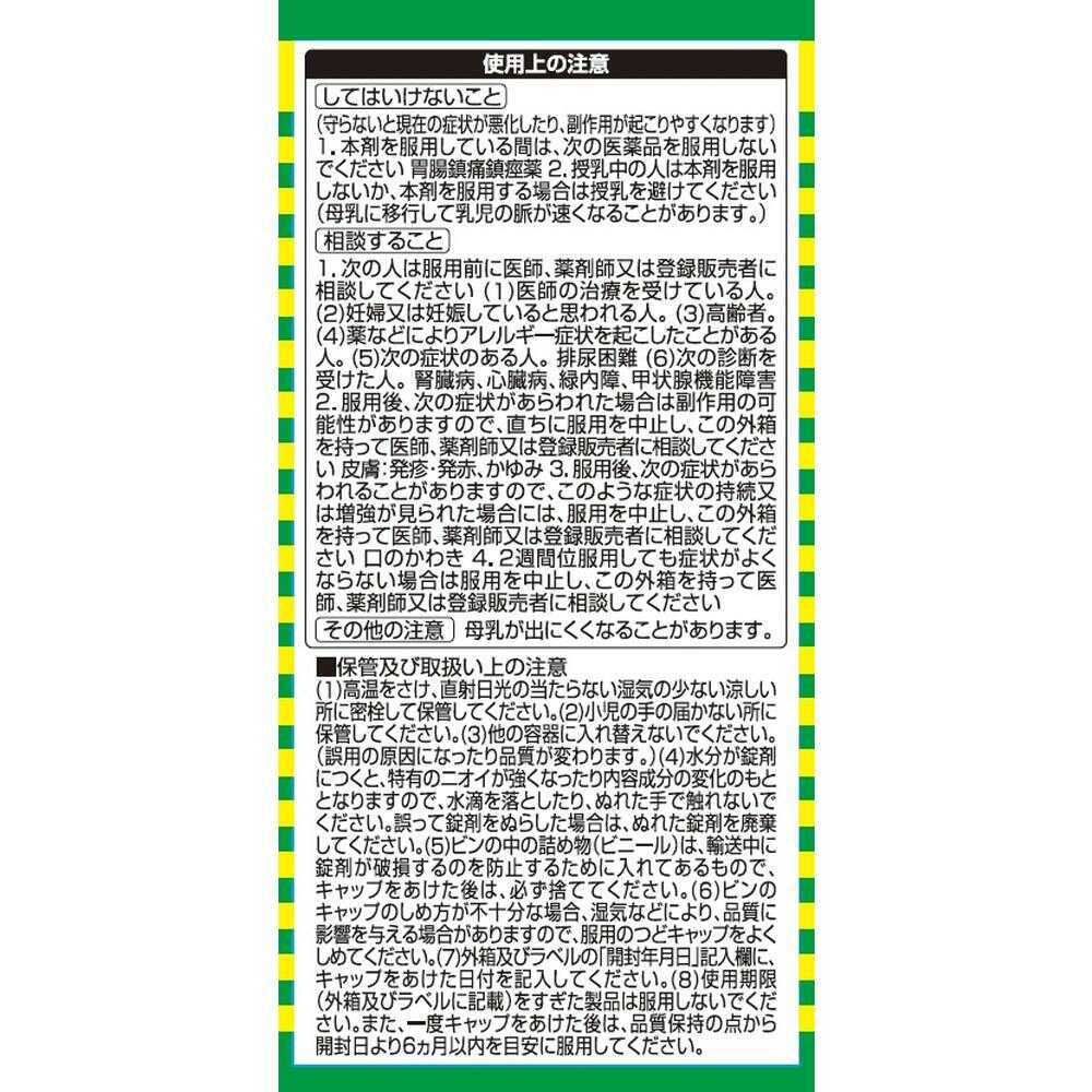 【注意!】こちらの商品は医薬品です。※医薬品は使用上の注意をよく読み用法・用量を守って正しくお使い下さい。商品説明(製品の特徴)荒れて傷んだ胃粘膜を修復し、弱ってきた胃を正常に戻していく使用上の注意■してはいけないこと1.本剤を服用している間は、次の医薬品を服用しないでください 胃腸鎮痛鎮痙薬2.授乳中の人は本剤を服用しないか、本剤を服用する場合は授乳を避けてください(母乳に移行して乳児の脈が速くなることがあります。)■相談すること1.次の人は服用前に医師、薬剤師又は登録販売者に相談してください(1)医師の治療を受けている人。(2)妊婦又は妊娠していると思われる人。(3)高齢者。(4)薬などによりアレルギー症状を起こしたことがある人。(5)次の症状のある人。・・・排尿困難(6)次の診断を受けた人。・・・腎臓病、心臓病、緑内障、甲状腺機能障害2.服用後、次の症状があらわれた場合は副作用の可能性がありますので、直ちに服用を中止し、この台紙を持って医師、薬剤師又は登録販売者に相談してください関係部位:症状 皮膚:発疹・発赤、かゆみ3.服用後、次の症状があらわれることがありますので、このような症状の持続又は増強が見られた場合には、服用を中止し、この添付文書を持って医師、薬剤師又は登録販売者に相談してください 口のかわき4.2週間位服用しても症状がよくならない場合は服用を中止し、この添付文書を持って医師、薬剤師又は登録販売者に相談してください■その他の注意 母乳が出にくくなることがあります。効能/効果胃部不快感、胃弱、もたれ、胃痛、食べ過ぎ、飲み過ぎ、胸やけ、はきけ(むかつき、胃のむかつき、二日酔・悪酔のむかつき、嘔気、悪心)、嘔吐、食欲不振、消化不良、胃酸過多、げっぷ、胸つかえ、消化促進、胃部・腹部膨満感、胃重用法/用量1日3回毎食後、水又は温湯で服用成人(15歳以上):1回2錠8歳以上15歳未満:1回1錠成分/分量(成人1日量/6錠・3包中) メチルメチオニンスルホニウムクロリド(MMSC) 150.0mg炭酸水素ナトリウム 600.0mg水酸化マグネシウム 210.0mg沈降炭酸カルシウム 1340.0mgロートエキス3倍散 90.0mg(ロートエキスとして 30.0mg)ソヨウ乾燥エキス 20.0mg(ソヨウとして 180.0mg)コウボク乾燥エキス 15.0mg(コウボクとして 180.0mg)センブリ末 30.0mgビオヂアスターゼ2000 24.0mgリパーゼAP12 15.0mg添加物ヒドロキシプロピルセルロース、硬化油、カルメロースCa、トウモロコシデンプン、ステアリン酸Mg、ステアリン酸グリセリン、ステアリン酸ポリオキシル、セラック、タルク、ケイヒ、ポリビニルアルコール(部分けん化物)、セルロース、二酸化ケイ素、lーメントール、デキストリン保管及び取扱上の注意1.高温をさけ、直射日光の当たらない湿気の少ない涼しい所に密栓して保管してください。2.小児の手の届かない所に保管してください。3.他の容器に入れ替えないでください。(誤用の原因になったり品質が変わります。)4.水分が錠剤につくと、特有のニオイが強くなったり、内容成分の変化のもととなりますので、水滴を落としたり、ぬれた手で触れないでください。誤って錠剤をぬらした場合は、ぬれた錠剤を廃棄してください。5.容器のキャップのしめ方が不十分な場合、湿気などにより、品質に影響を与える場合がありますので、服用のつどキャップをよくしめてください。6.ラベルの「開封年月日」記入欄に、キャップをあけた日付を記入してください。7.使用期限(台紙及び容器に記載)をすぎた製品は服用しないでください。また、一度キャップをあけた後は、品質保持の点から開封日より6ヵ月以内を目安に服用してください。安全に関する注意メチルメチオニンスルホニウムクロリドなどが配合されていますので、特有のニオイがあります。問い合わせ先興和株式会社 お客様相談センター電話番号:03-3279-7755受付時間:月〜金9:00〜17:00まで(土、日、祝を除く)メーカー名(製造販売会社)興和株式会社ブランド名キャベジンコーワ剤形錠剤 style='border-bottom: 1px solid #dcdcdc; font-weight: bold;'>広告文責株式会社サンドラッグ/電話番号:0120-009-368JAN4987973126226 ※パッケージ・デザイン・内容等は、リニューアルにより予告なしに変更される場合がありますので、予めご了承ください。※お届け地域によっては、表記されている日数よりもお届けにお時間を頂く場合がございます。キャベジン、コーワ、胃腸薬