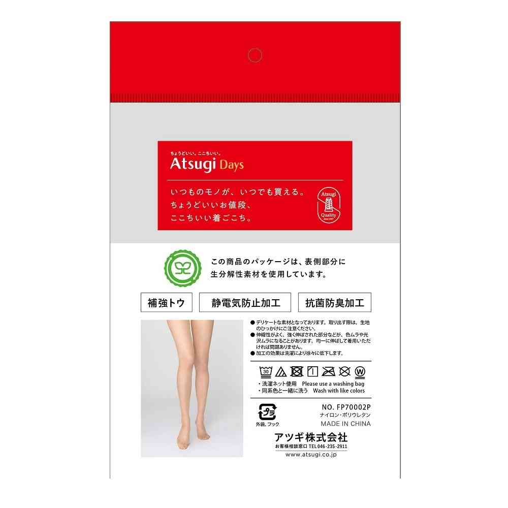 商品説明(製品の特徴)なめらかで美しく。補強トウ。静電防止加工。抗菌防臭加工。サイズL−LLカラーヌーディベージュ素材/材質ナイロン・ポリウレタン保管及び取扱上の注意デリケートな素材となっております。取り出す際は、生地のひっかけにご注意ください。伸縮性がよく、強く伸ばされた部分などが、色ムラや光沢ムラになることがあります。均一にの伸ばして着用いただければ問題ありません。加工の効果は洗濯により徐々に低下します。洗濯ネットを使用し、同系色と一緒に洗ってください。問い合わせ先アツギ株式会社お客様相談窓口 046-235-2911メーカー名(製造販売会社)アツギ株式会社ブランド名アツギデイズ原産国中国広告文責株式会社サンドラッグ/電話番号:0120-009-368JAN4550667006878 ※パッケージ・デザイン・内容等は、リニューアルにより予告なしに変更される場合がありますので、予めご了承ください。※お届け地域によっては、表記されている日数よりもお届けにお時間を頂く場合がございます。ストッキング、パンスト