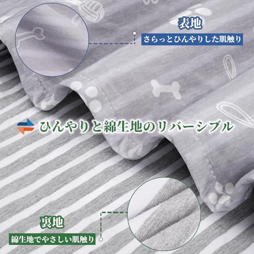 シンプル骨柄/Medium/SMMJ-BLM・Size:MediumColor:骨柄・暑い夏にピッタリのクールブランケットです。ワンちゃん、ネコちゃんの夏熱中症対策グッズとして最適です。可愛いデザインの為、お子様のお昼寝やタオルケットがわりにもおすすめ。オフィスやデスクワークの冷房対策にもピッタリ・ひんやりと綿生地のリバーシブルブランケットです。ひんやり冷たい冷感生地と肌触りの良い綿生地を気温やシーンに合わせて使い分けできます・触るとひんやりして、シャリシャリっとした感触なので柔らかくてとても気持ちいいです。 放熱させる生地なので、冷え過ぎないのもポイントです。クーラーをかけすぎず、かつ熱中症も防ぐために良い商品です。老犬の場合は真夏はエアコンの部屋に居させてもちょっと寒そうなので、これをふんわりとかけてあげれば体温調節がしやすくなります・薄めの生地なので洗濯も簡単です。ご家庭の洗濯機で丸洗い出来るので汗ばみやすい夏も清潔に保てます・サイズは二つをご用意。M:77×53cm;L:104×78cm;掛けても敷いてもよし、マルチなブランケット。かけて使うのはもちろん