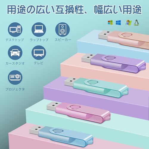 10個セット/8GB/-・Size:8GBColor:10個セット・カラフルな10個セット:usbメモリ8GB *10個セット、 異なる色が5種類も揃えていて、カラフルでおしゃれ。複数の人が使う場合に、それぞれ自分のお好みの色をお好きに選べることができて大満足!しかも、各種の活動の写真、動画、資料などをメモリの色別で分類して保存することもできて超便利!・コンパクト・使いやすい:インターフェイス:USB2.0、質量:16g、サイズ:54*16*10mm。挿すだけで即使用、他の駆動ソフトウェアなど一切必要なく超簡単。360度回転なアルミカバー、キャップを失くす事がなく保管しやすい。コンパクトでキーホルダーにつけてどこにも持ち歩けるし、とても運びやすい!・対応機種&転送速度:USBインターフェース搭載のWindowsパソコン、Mac(Windows 10/8/7/Vista/2000/XP/ME/NT、Linux、Mac OS 8.6以降規格)に対応。読み込み速度:20〜30MB/s;書き込み速度:7MB/s-10MB/s。コンビューターやカーナビなど各機種の間に