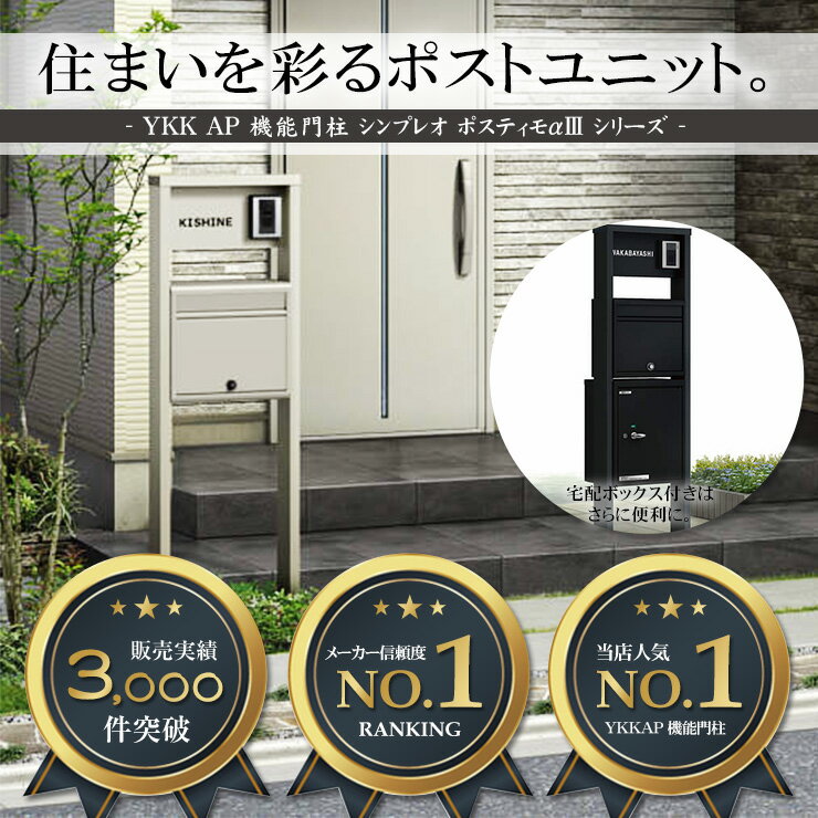 【無料★特典付】YKKap ポスティモα3 C型 H14サイズ LED照明無し ポストN2型 後出し 宅配ボックス付き YKK ポスティモ 機能門柱 おしゃれ クール 一番人気 αIII シンプル デザイン 郵便受け 郵便ポスト 門柱 ポスト 戸建て