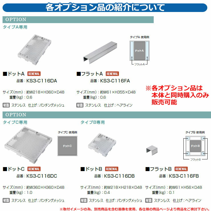 ガーデンパン 水受け SPRIT スプリット タイプC 専用オプション ドットC 本体と同時購入のみ販売可能 販売条件 ◆詳しくはこちらをご確認ください サイズ 本体:約W360×H360×D48 重量:1.0kg 材質 ステンレス/仕上げ:パンチングメッシュ 仕様 本体別売 ※1個のみ ※本体と同時購入のみ販売可能 セット内容 ■SPRIT スプリット タイプC 専用オプション ドットC 品番:KS3-C116DC 備考・注意 ※配送には実働約5日~7日程度お時間が必要となる場合があります。欠品時はさらにお時間がかかります。 ※イメージ画像はイメージサンプルとして販売内容以外の商品があります。必ず内容を確認ください。 ※イメージ画像は使用するモニターやブラウザにより色が違って見える場合があります。 ※施工には、専門的な知識と、道具、技能が必要となります。お近くの工事店にご依頼して頂くようお願い致します。 分類 【ウォータ-ガーデン】【ガーデンパン】【シンプルモダン】【シルバー】【オンリーワンクラブ】オンリーワン SPRIT スプリット シリーズ ステンレスのクールな素材感が目を引く、スタイリッシュなガーデンパン「スプリット」に新デザインが加わりました。価格を見直し、よりお求めやすくなりました。 ▼ オンリーワン SPRIT スプリット シリーズ 購入はこちら ▼ ▼ 本体 購入はこちら ▼ ▲タイプA ▲タイプB ▲タイプC ▲タイプD ▼ オプション品 購入はこちら ▼ ▲ドットA ▲フラットA ▲ドットB ▲フラットB ▲ドットC
