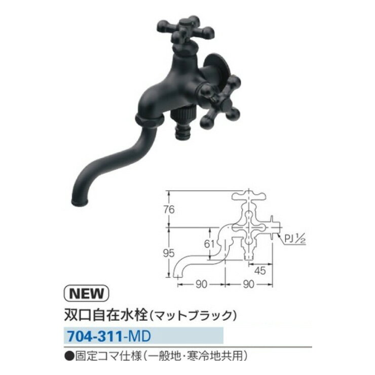 蛇口 水栓柱 立水栓 双口自在水栓 704-311-MD マットブラックカクダイ KAKUDAI 外 水道 おしゃれ シンプル 庭 玄関 水回り 可愛い かわいい