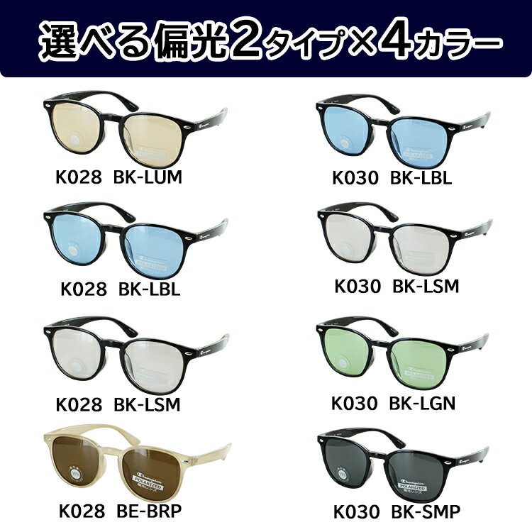 サングラス キッズ 子供用 こども チャンピオン 偏光サングラス ブランド UVカット uv400 紫外線カット 男の子 女の子 おしゃれ 薄い色 薄色サングラス ボストン K028 ウェリントン K030 セルフレーム お出かけ スポーツ アウトドア レジャー 軽量 紫外線対策