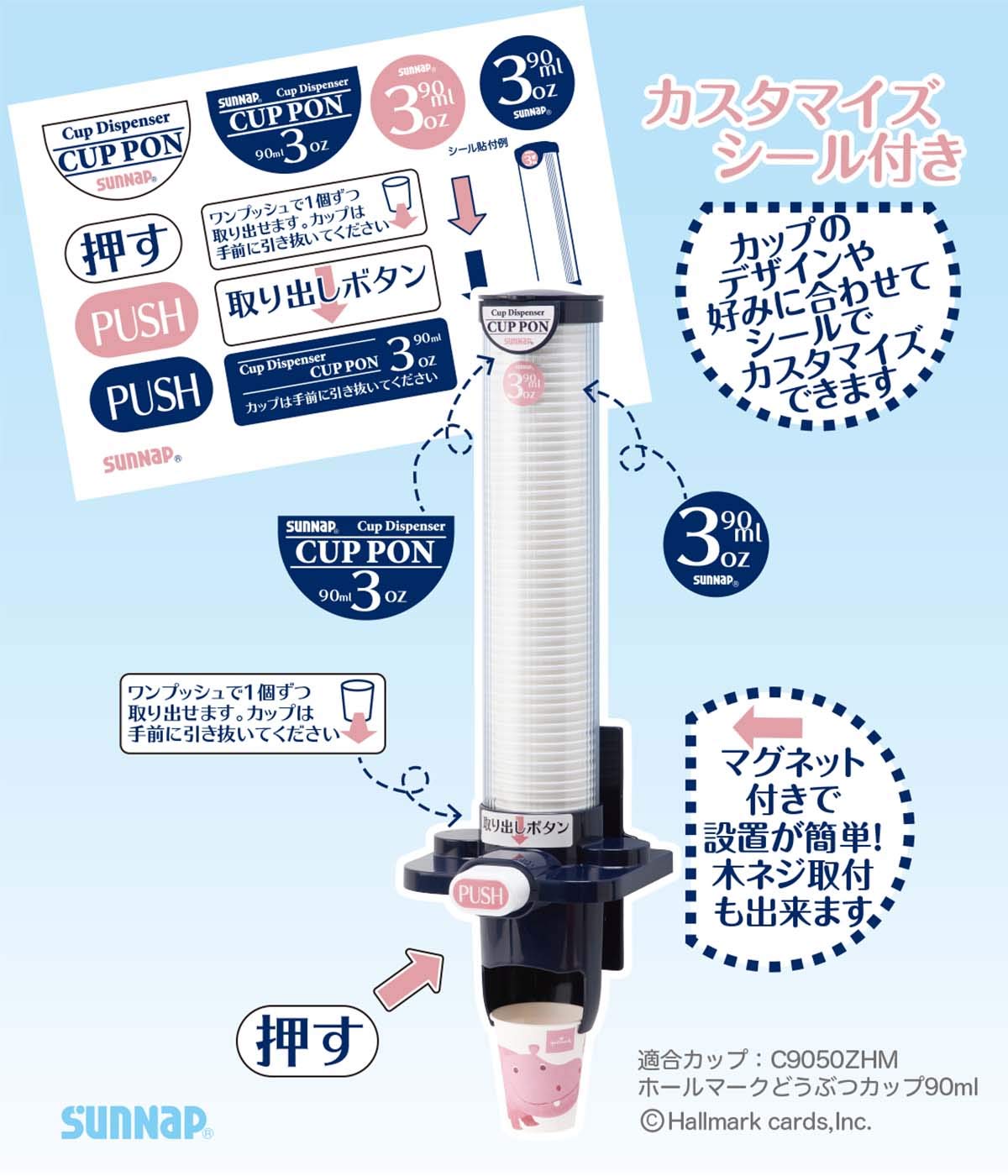 カップディスペンサー カップポン 90ml 3オンス 口径57mm用 【 補充・取付が簡単 紙コップ ディスペンサー 3oz 収納 CD-3DB 】
