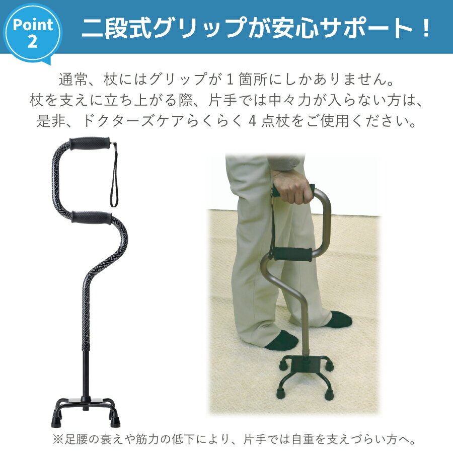 杖 4点杖 四点杖 多点杖 4点 おしゃれ ドクターズケアらくらく4点杖 HC 女性 男性 軽量 おしゃれ 無地 シンプル ファッション 樹脂 アルミ製 伸縮杖 つえ ステッキ 介護 医療 高齢者 散歩 歩行補助 リハビリ ギフト 柄 送料無料 あす楽
