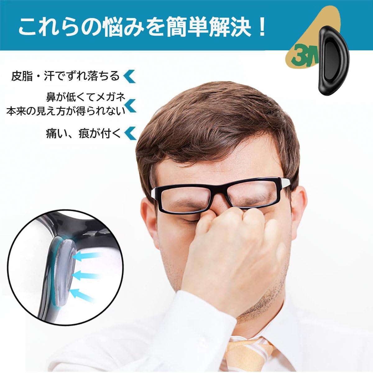 商品情報商品の説明説明 【材質】シリコン。主な仕様 【ずれにくい】凹凸形状で鼻にぴったりフィット。汗でメガネが滑ってしまう方、鼻の低い方の悩み解消!br【痛くない】 柔らかな上質シリコン製。長時間の装着でも痛くなく掛け心地が快適。お肌にやさしい素材です。br【はがれにくい】安心な3M製強力テープ使用。通常のテープより長く使えます。簡単使用、鼻あて部分に貼り付けるだけです。※貼る前に貼付け面の油分・汚れ等をきれいに除いてください。手で両面テープに触れないでください。※この商品は消耗品です。両面テープは体温や気温の熱、汗やお風呂の湿気等によって劣化する場合がありますのでご理解ください。brセルフレーム・メタルフレーム・サングラスなど、いろんなメガネに使用可能な眼鏡の鼻パットです。男女(メンズ・レディース)兼用です。br【内容物】メガネ鼻パッド*10個、収納ケース*1、ピンセット*1、マイクロファイバークロス*1。サイズ:7*15*2mm、色:透明