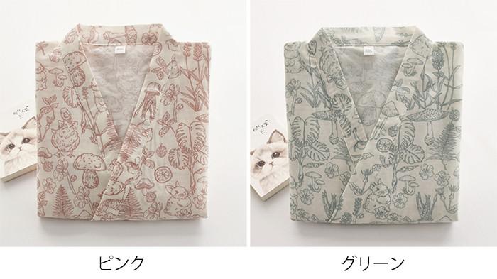 【ルームソックス1点プレゼント】ルームウェア レディース 羽織 総柄 春夏 寝巻き 寝間着 コットン ポケット付き パジャマ 着心地よい ゆったり 気持ちいい 長袖 おしゃれ M L ピンク グリーン dh065jcjcx0