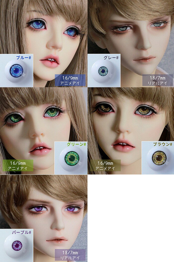 ドールアイ アニメアイ リアルアイ アクリルアイ 球体関節人形 BJD SD DD アイ 14mm 16mm 18mm 1/3 1/4 1/6 ブルー グリーン ブラウン パープル グレー 5色 選べる 瞳 パーツ カスタムドール用 交換用 目 高品質 ハンドメイド 手芸 材料 フィギュア nc008x1x1m7