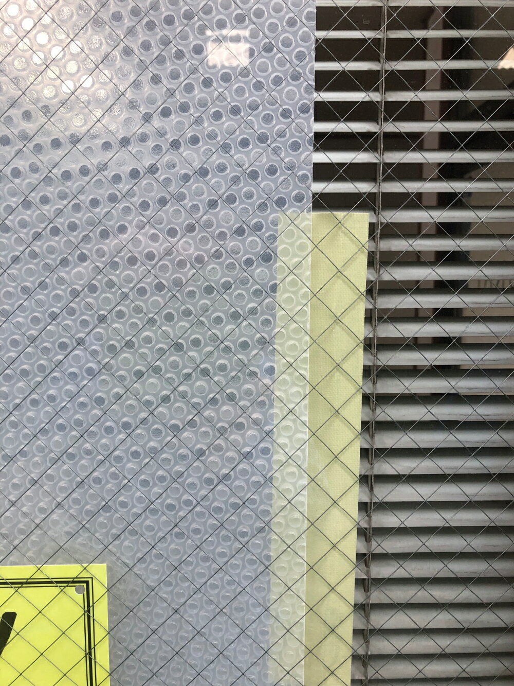 【 窓用断熱・緩衝パネル 】 ・保温断熱、ガラスの保護、目隠し、水槽(保温)等にも。 電気代、燃料費高騰で冷暖房費がかさむ中、窓からの熱気や冷気を和らげる為ご利用下さい。 介護施設、保育園など 窓の内側にテープで留めて、思わぬアクシデントの際にパネルの緩衝性が窓を割れにくくします。 ★強い衝撃の場合はパネルが破損・ガラスが割れる事があります。 ★自己責任にて設置、ご使用下さい。 ★テープは養生用で周囲を留めるか、両面テープで田の字で留める事をお勧めします。 ・窓に貼る事により半透明なパネルが眩しさを軽減し、目隠しの役割もします。 ・採光できますが透過度が落ちます。 ・粘性が適度にある為、カッター等で切断加工する際は十分にご注意下さい。 ・車の窓のサイズに切断加工する事で車中泊の際に断熱・目隠しにもご使用いただけます。 ・台風や暴風時の窓ガラス保護に 雨戸が無い窓の保護に段ボールや緩衝材の貼り付けで簡易な対策をされる事がありますが、こちらのパネルの方が強度、耐水性、復元性もある為、段ボールやプチプチよりは効果的かと思われます。 (※ただし、万が一飛ばされると段ボールや緩衝材に比べて硬さも重量もある為、二次被害を防ぐ為にもしっかりした固定が必要になります。) *実例としましては… 「鉄筋コンクリート造の事務所で壁面からの熱気・冷気が酷かったが、このパネルをつけて熱気・冷気が和らいだ。」 「床から1枚のみでコンクリート部全面を覆っていない為、完全に断熱は出来ていないが、かなり効果的」と評価頂きました。 「高低差のある隣地からの視線を見えやすい部分に貼り付けて、プライバシーを保護できた。」 「古い家でガラスからの冷気が酷かったが、サイズを合わせて窓に貼り、改善された。」 など… テスト販売につきサイズは2種類ですが、10枚や20枚以上で “別注対応” も予定しております。 ※一部地域・北海道・沖縄・離島は対応外となります。 【 配送について 】 ●メーカー直送品の為、基本的に事業者様(会社・店舗・団体等)への発送となります。※個人様宅への発送は送料がかかりますので必ず事業者名をお書き下さい。 ●配送時間は基本的に9:00〜17:00の時間帯になります。 ●土・日・祝日・夜間の出荷及び配送はできません。 ●発送日の翌日が土日祝日の場合は休み明けの配送となります。 ●場所の確認でお電話をさせて頂く場合があります。必ず日中繋がる電話番号をご記載下さい。 ●再配送・転送の場合は別途送料がかかります。(送付先の住所の再確認をお願いします。) ※この商品は代引不可となっておりますので、あらかじめご了承下さい。 サーチワード 断熱、遮熱、保温、保冷、窓断熱、窓保護、緩衝パネル、プライバシー保護、雨戸、風対策、寒さ対策、省エネ、エコ、暖房費節約 ▼▽ サイズ・枚数違いはこちら! ▽▼ 900mm×900mm 10枚 900mm×900mm 20枚 600mm×600mm 10枚 600mm×600mm 20枚 ▼▽ こちらもおすすめ ▽▼ 1500g/m 1枚 1500g/m 2枚 1000g/m 1枚 1000g/m 2枚