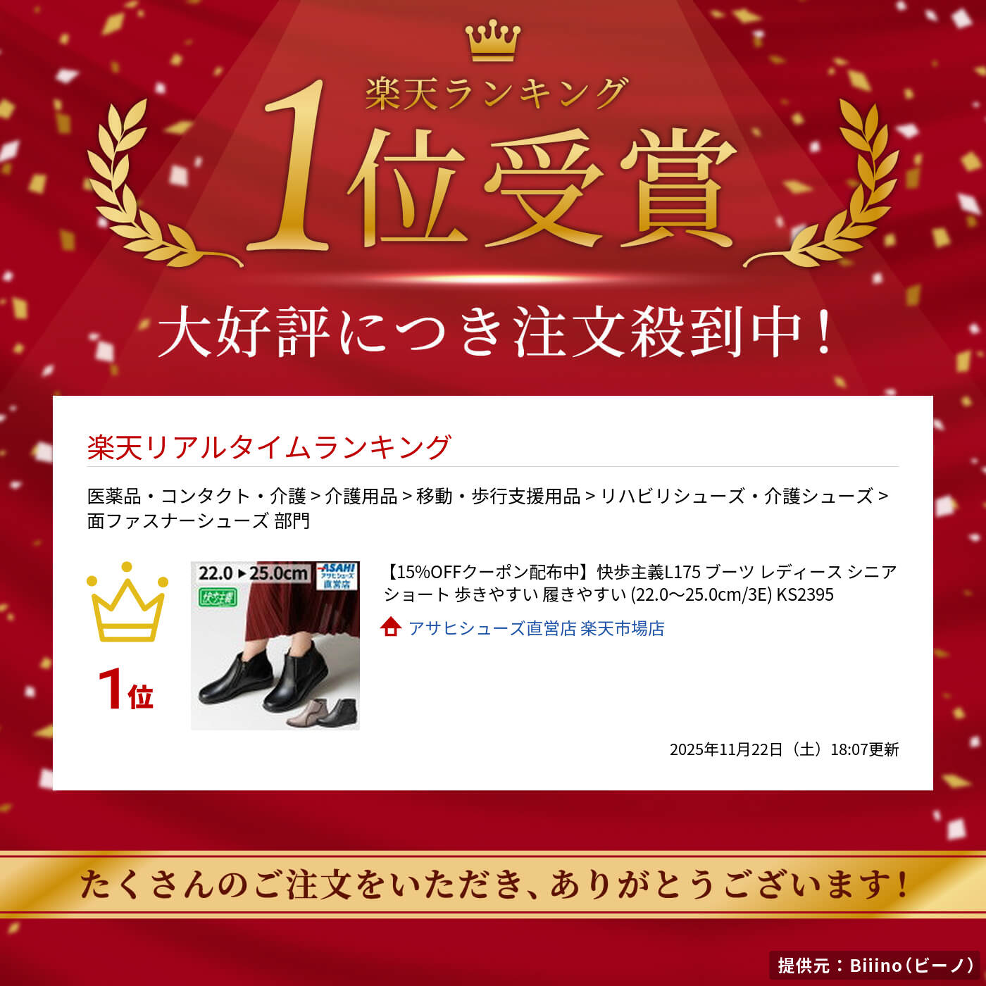 【15%OFFクーポン配布中】快歩主義L175 ブーツ レディース シニア ショート 歩きやすい 履きやすい (22.0〜25.0cm/3E) KS2395