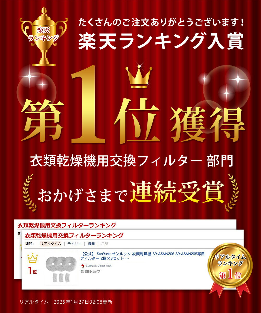 【公式】 衣類乾燥機 純正フィルターセット(排気口フィルター サクションフィルター)2種×3セット SR-ASMN206 SR-ASMN205 SR-ASMNS300専用 オプション アクセサリー 消耗品 SunRuck サンルック SR-ASMN205-OPFL-3SET 【ネコポス発送】【代引不可】