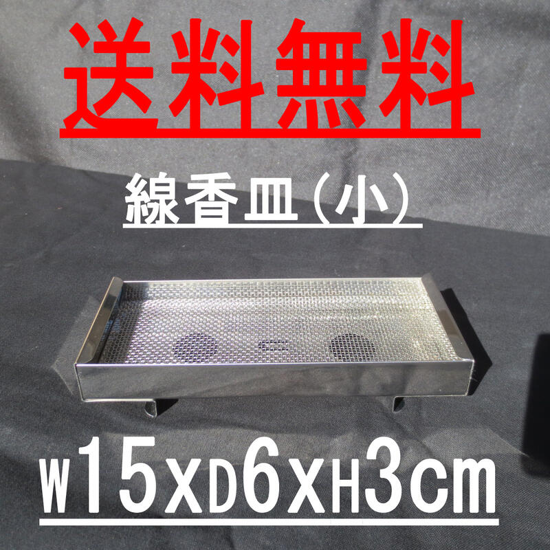 お墓 線香皿(小)W15xD6xH3cm 家名シール・網付き ステンレス製 横置き型 線香 寝かせる 【クリックポストで送料無料】