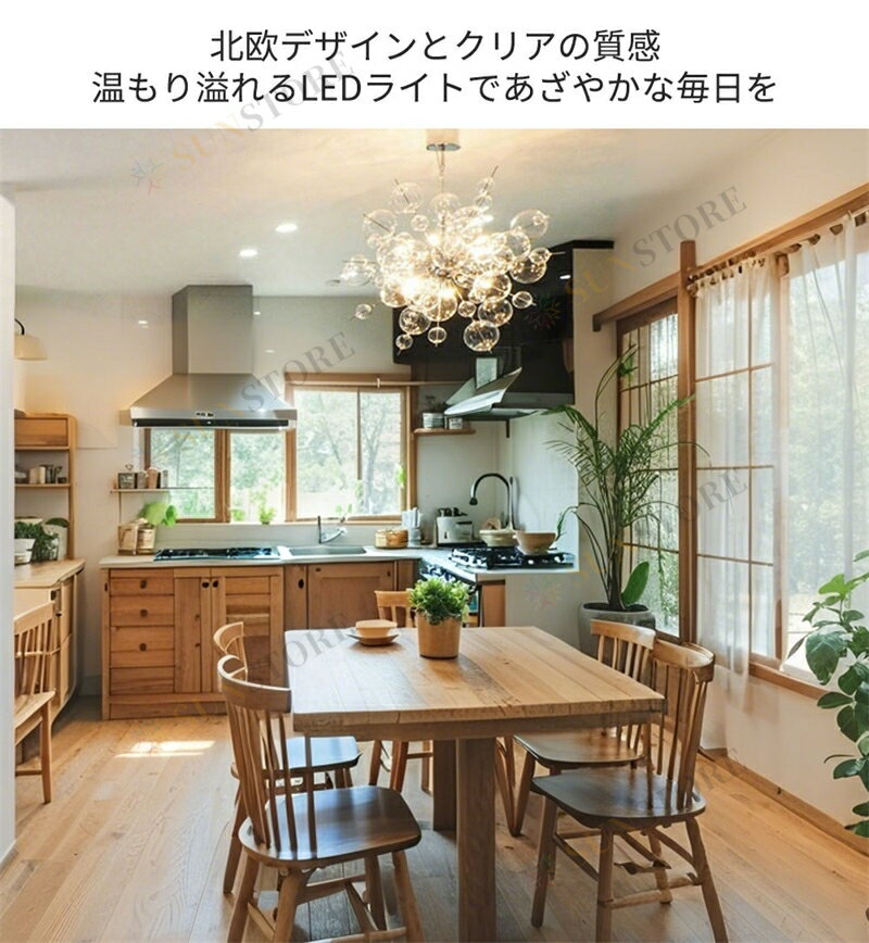 【SS限定価格】ペンダントライト 6灯 バブルシャンデリア 63cm 三色切替 電球付き ガラス おしゃれ 北欧 高級 クリア LED ダイニング モダン デザイン 照明 天井照明 玄関 リビング 寝室 洗面所 居間 キッチン 明るい 店舗 シーリング対応 新居 デザイナーズ 新生活