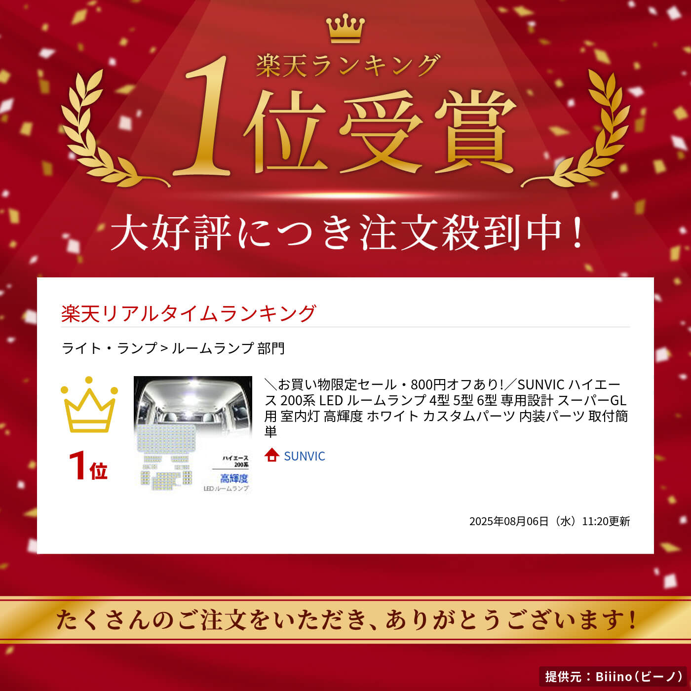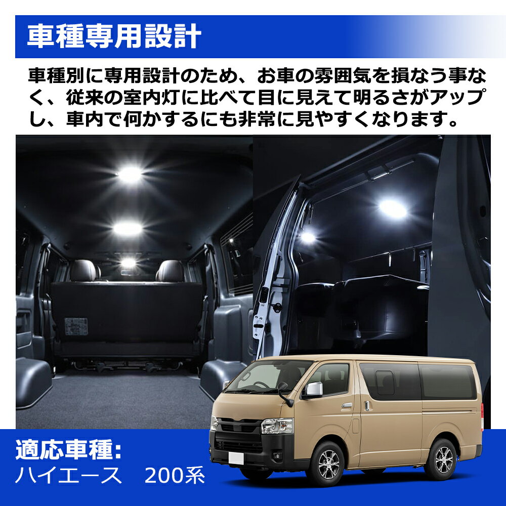 SUNVIC ハイエース 200系 LED ルームランプ 4型 5型 6型 専用設計 スーパーGL用 室内灯 高輝度 ホワイト カスタムパーツ 内装パーツ 取付簡単