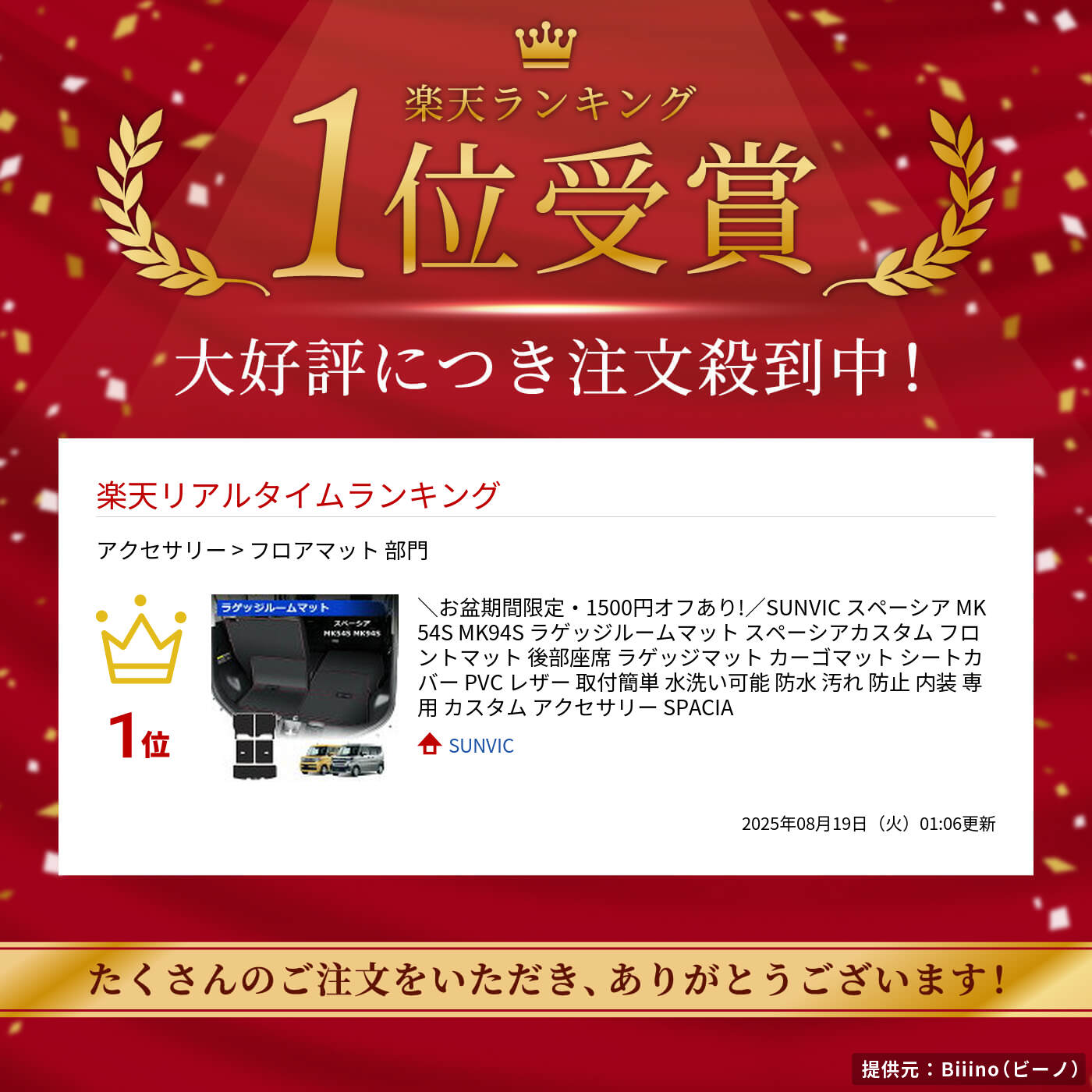 \今週限定セール・1500円オフあり!/SUNVIC スペーシア MK54S MK94S ラゲッジルームマット スペーシアカスタム フロントマット 後部座席 ラゲッジマット カーゴマット シートカバー PVC レザー 取付簡単 水洗い可能 防水 汚れ 防止 内装 専用 カスタム アクセサリー SPACIA