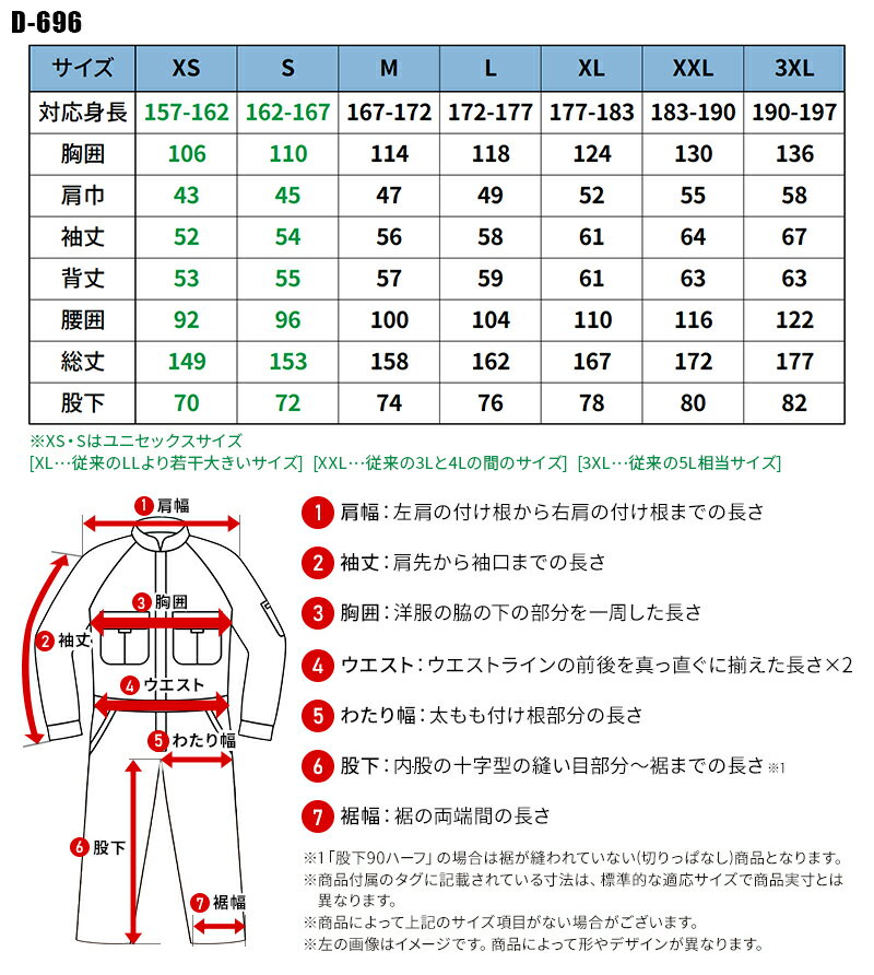 オールドアメリカン・テイスト溢れる「ウォバッシュ・ストライプ」に最新の機能性をプラス アメイジング・ストレッチの採用により、ストレスフリーな着心地を実現。 不用意に物を傷つけない袖口の隠しボタンや、夜間の視認性を高める反射素材など、現在のワークシーンで必要な機能も併せ持つ。 品 番 コーコス信岡 D-696 シーズン 秋冬用 素 材 綿98%・ポリウレタン2% ストレッチウォバッシュ カラー 31 インディゴ 33 グラファイト 51 ライトインディゴ その他 XS・Sはユニセックスサイズ 海外生地・海外染色のため、製品により若干の色違いが発生することがございます。ご了承ください。 染料が色落ちしますので他の物と一緒に洗わないでください。 汗や雨など湿った状態および摩擦によって色移りすることがあります。 洗濯により3%前後縮みますので丈詰めをする際には股下を長めにしてください。 乾燥機の使用はお避け下さい。素材の特性上、生地性能の低下を招く可能性がありますので、タンブル乾燥機のご使用はお避けください。 熱やスチームで縮むことがありますので、アイロン掛けには十分注意してください。 ストレッチ 反射 機能詳細一覧はこちら 作業服の色合いを揃えたい場合、同シリーズでお選び下さい。同メーカーでも品番が異なると素材の特徴により色合いが異なります。 シャツジャケット カーゴパンツ ツナギ オーバーオール