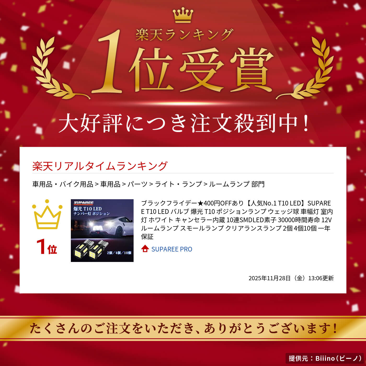 月末月初セール★最大35%オフあり!【人気No.1 T10 LED】SUPAREE T10 LED バルブ 爆光 T10 ポジションランプ ウェッジ球 車幅灯 室内灯 ホワイト キャンセラー内蔵 10連SMDLED素子 30000時間寿命 12V ルームランプ スモールランプ クリアランスランプ 2個 4個10個 一年保証