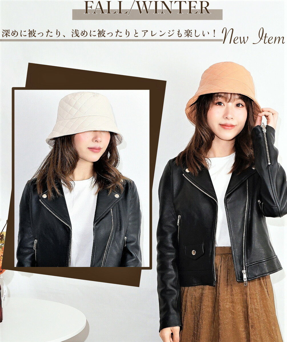 バケットハット レディース 秋冬 帽子【送料無料】 ハット フェイクレザー 中綿 キルティング もこもこ 秋冬 レディースハット 女性用 格子柄 女性用帽子 完全遮光 紫外線対策 サイズ調整可能