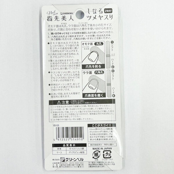 つめやすり グリーンベル しなるツメヤスリ(YB-03) ツメヤスリ 指先美人 爪磨き つめやすり ネイルケア 爪用 爪用ヤスリ 水洗い可能 ケース付き 日本製【2058】