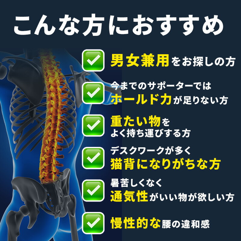 男女兼用でご使用になれる 腰スペシャルガードサポーターです。 悪い姿勢は日常生活に悪影響を 及ぼすことがありますが、 腰スペシャルガードサポーターは その問題を解決します。 この男女兼用の製品は、 4本の金属ボーンと2本の弾性ワイヤーにより、 確かなホールド力を提供します。 両側からの加圧効果で、腰をしっかりサポート! 腰の負担を軽減し腰のお悩みを抱えた方に最適です♪ 特徴的なメッシュ構造は通気性に優れ、 オールシーズン使用に適しています。 通気性がいい物をお求めの方にピッタリです。 さらに、椎間板ヘルニアを 抱える方々にもお勧めです。 腰スペシャルガードサポーターは、 腰への理想的なサポートを提供し、 痛みを軽減します。 8本のベルトと二重圧力ストラップにより、 締付の調整が可能です。 自分に合った快適なフィット感を実現できます。 日常生活での活動や オフィスでの長時間の作業に最適です。 快適さとサポートを求める方々に、 是非お試しいただきたい商品です。 素材:SBR(スチレンブタジエンゴム) ポリエステル サイズ M 細身の女性から一般的な女性向け L ふくよかな女性から一般的な男性向け XL 一般的な男性からふくよかな男性向け ※あくまで参考参照です 画像サイズチャートからご確認ください男女兼用でご使用になれる腰スペシャルガードサポーターです。悪い姿勢は日常生活に悪影響を及ぼすことがありますが、腰スペシャルガードサポーターはその問題を解決します。この男女兼用の製品は、4本の金属ボーンと2本の弾性ワイヤーにより、確かなホールド力を提供します。両側からの加圧効果で、腰をしっかりサポート!腰の負担を軽減し腰のお悩みを抱えた方に最適です♪特徴的なメッシュ構造は通気性に優れ、オールシーズン使用に適しています。通気性がいい物をお求めの方にピッタリです。さらに、椎間板ヘルニアを抱える方々にもお勧めです。腰スペシャルガードサポーターは、腰への理想的なサポートを提供し、痛みを軽減します。8本のベルトと二重圧力ストラップにより、締付の調整が可能です。自分に合った快適なフィット感を実現できます。日常生活での活動やオフィスでの長時間の作業に最適です。快適さとサポートを求める方々に、是非お試しいただきたい商品です。素材:SBR(スチレンブタジエンゴム)ポリエステルサイズM 細身の女性から一般的な女性向けL ふくよかな女性から一般的な男性向けXL 一般的な男性からふくよかな男性向け※あくまで参考参照です画像サイズチャートからご確認くださいkuiyouoは送料無料!当日、翌日営業日には発送♪3000円以上のお買い物で使える300円offクーポンもございますその他商品もぜひ↓画像クリックでご確認下さい♪