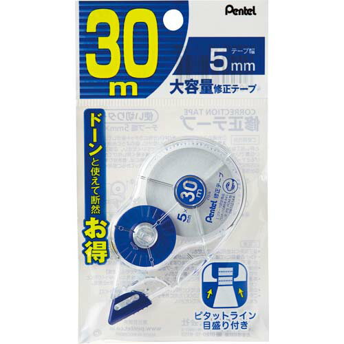 ぺんてる 大容量修正テープ 30m ピタットライン付 テープ幅:5mm XZT515-W