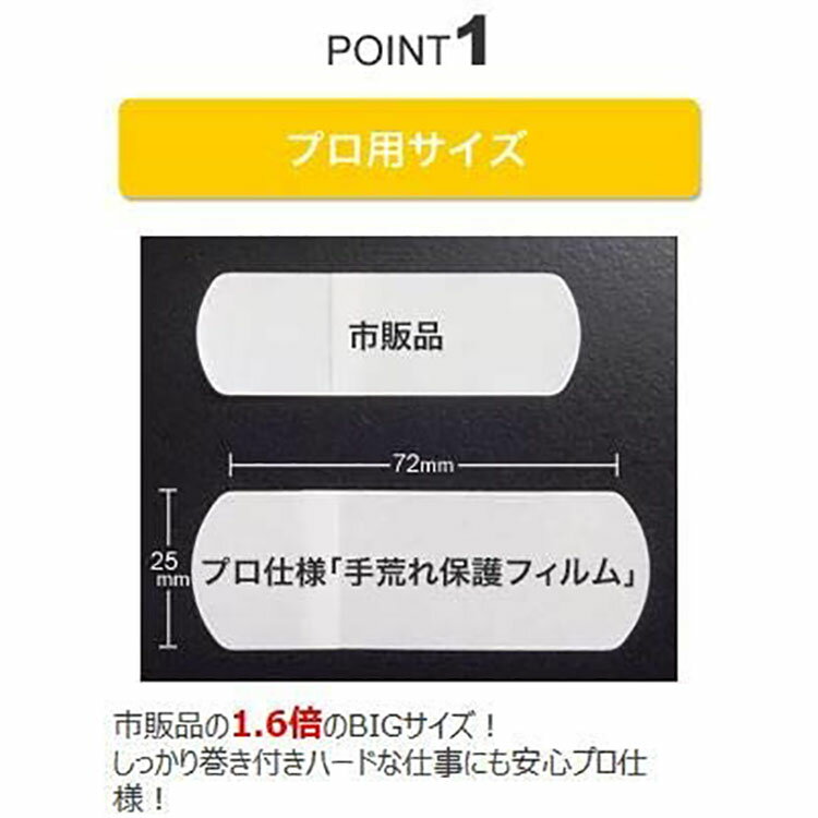 美容師や理容師など、水仕事の多い職場で働く プロのために開発された傷保護用の絆創膏です。 水の浸入を防ぐシリコーン粘着剤を使用しており、 耐水性に優れ、シャンプーや洗剤を使う水仕事でも傷口に 染みないプロ仕様です。 一般の絆創膏と違い粘着部が幅広になっており、 しっかり密着するので患部を曲げ伸ばししても 剥がれにくく、仕事中に何度も貼り替える手間が省けます。 外からの水は通さず内からの蒸気は通すので、 貼った部分がふやけにくく、 跡が残りにくくなっています。 剥がした直後も不潔な印象を与えません。 アレルギー性が低く、皮膚になじみやすい シリコーン粘着剤を使用しています。 特性上ベタつきがなく、 皮膚に密着するような使用感です。 0.03mmの極薄フィルムで 感触に違和感が生まれないので、 指周りに貼っても仕事に支障が出にくい 仕様になっています。 商品詳細 商品名 3個セット 東洋化学 手荒れ保護フィルム フィットバンN 100枚入り メーカー 東洋化学株式会社 内容量/サイズ/品質表示 25mm×72mm 100枚入り 3個セット ポリウレタンフィルム シリコーン系粘着剤 区分/原産国 医療機器 日本 広告文責 株式会社 サージ