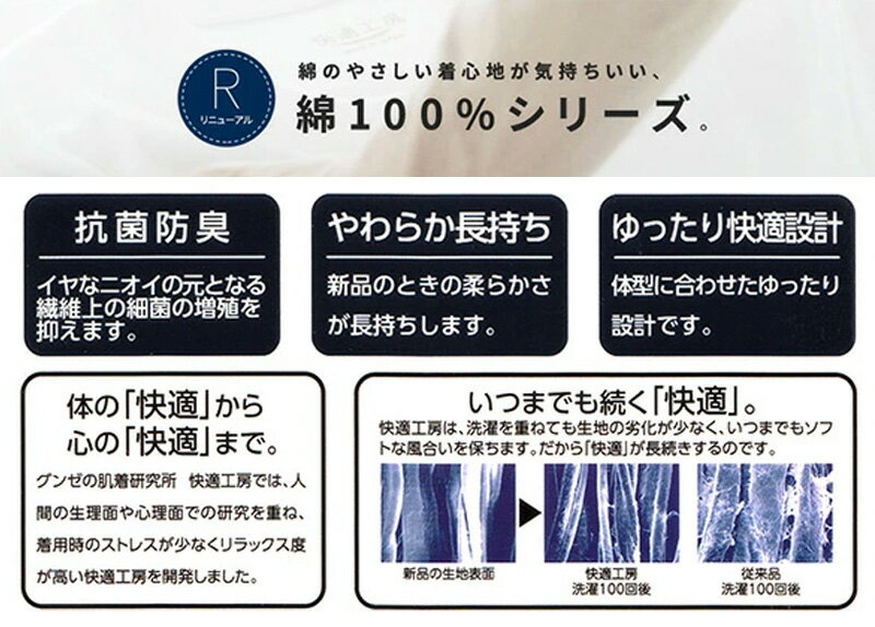 ショップトップ > カテゴリトップ > 特集ページ > 素材別 > 綿100%◆快適工房 紳士天引きブリーフの紹介日本国内下着メーカーの老舗であるGUNZE(グンゼ)のロングセラー「快適工房(かいてきこうぼう)」。グンゼが人間の生理面や心理面での研究を重ね、着用時のストレスが少ない設計を研究し、生み出した着用者に天然素材の心地よさと、上質な快適さをお届けするシリーズです。本商品はメンズ(男性・紳士)用の前あき天引きブリーフです。○上質な綿100%の心地よさ快適工房シリーズの特長である、上質なコットン素材の生地。天然素材ならではのやわらかくて優しい肌触り、滑らかな着心地が肌を優しく包みます。綿は吸湿性に優れた素材です。汗をかいても素早く吸収、水分を適度に放出してくれるので春夏の暑い季節や、スポーツや運動時のインナーとして最適です。天然素材なので、敏感肌や乾燥肌、アトピーなどの肌トラブルでお悩みの方にも、肌への刺激が少なくおすすめの肌着です。○シンプルなデザイン白無地でシンプルな本商品は、当たり障りが無く、お父さん(パパ)のような中高年の世代からおじいちゃん(お爺ちゃん)のようなご高齢の世代まで幅広くお使い頂けます。ホワイト一色だと汚れが目立ってしまうのでは・・・とご心配の方もいらっしゃるかと思いますが、実は、使用による生地の変化・劣化が分かりやすいというメリットがあり、買い替えのタイミングも分かりやすく便利なのです。下着についた汗や汚れによって、体調の変化に気づけるということもあるので入院着や介護肌着としてもおすすめです。○体型に合わせた設計体型に合わせた設計で、ゆったりとした穿き心地なので、しめつけ感が少なく、身体にも負担がかかりにくいです。毎日のスーツや仕事着、作業着、またプライベートの私服のインナーとしてさらに自宅でのリラックスタイムや就寝時に着用するインナーとしても身体にストレスを与えにくく、快適な着心地です。日本製(MADE IN JAPAN)で良質、長持ちする下着です。◆快適工房 紳士天引きブリーフの詳細商品名快適工房 紳士天引きブリーフ対象者メンズ(男性・紳士)お父さん・おじいちゃんぽっちゃりサイズS (ウエスト:68-76cm) 「kh5031」M (ウエスト:76-84cm) 「kh5031」L (ウエスト:84-94cm) 「kh5031」LL(ウエスト:94-104cm) 「kh5031-ll」3L(ウエスト:98-108cm) 「kh5031-3l」4L(ウエスト:104-114cm)他のサイズをご希望の際は上記「」内の商品番号にてご検索ください。【注意】販売時期によって、後継品番商品のお届けになりますので、あらかじめご了承くださいませ。カラー(03)ホワイト素材・加工本体:綿100%(フライス)生産国日本製(MADE IN JAPAN)関連キーワード/しまむらや西松屋、あかのれん、丸高衣料ファンにおすすめ m-bri-st KQ5031快適工房 紳士 前開き天引きブリーフ◆おすすめのカテゴリ 日本国内下着メーカーの老舗であるGUNZE(グンゼ)のロングセラー「快適工房(かいてきこうぼう)」。グンゼが人間の生理面や心理面での研究を重ね、着用時のストレスが少ない設計を研究し、生み出した着用者に天然素材の心地よさと、上質な快適さをお届けするシリーズです。本商品はメンズ(男性・紳士)用の前あき天引きブリーフです。○上質な綿100%の心地よさ快適工房シリーズの特長である、上質なコットン素材の生地。天然素材ならではのやわらかくて優しい肌触り、滑らかな着心地が肌を優しく包みます。綿は吸湿性に優れた素材です。汗をかいても素早く吸収、水分を適度に放出してくれるので春夏の暑い季節や、スポーツや運動時のインナーとして最適です。天然素材なので、敏感肌や乾燥肌、アトピーなどの肌トラブルでお悩みの方にも、肌への刺激が少なくおすすめの肌着です。○シンプルなデザイン白無地でシンプルな本商品は、当たり障りが無く、お父さん(パパ)のような中高年の世代からおじいちゃん(お爺ちゃん)のようなご高齢の世代まで幅広くお使い頂けます。ホワイト一色だと汚れが目立ってしまうのでは・・・とご心配の方もいらっしゃるかと思いますが、実は、使用による生地の変化・劣化が分かりやすいというメリットがあり、買い替えのタイミングも分かりやすく便利なのです。下着についた汗や汚れによって、体調の変化に気づけるということもあるので入院着や介護肌着としてもおすすめです。○体型に合わせた設計体型に合わせた設計で、ゆったりとした穿き心地なので、しめつけ感が少なく、身体にも負担がかかりにくいです。毎日のスーツや仕事着、作業着、またプライベートの私服のインナーとしてさらに自宅でのリラックスタイムや就寝時に着用するインナーとしても身体にストレスを与えにくく、快適な着心地です。日本製(MADE IN JAPAN)で良質、長持ちする下着です。 よく一緒に購入されている商品778円類似商品はこちら956円695円1,390円695円782円782円1,390円1,130円