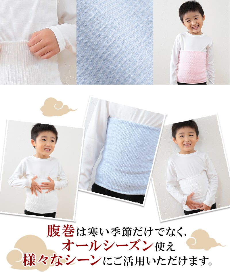 【要エントリー★12/10は抽選でポイントバック!】腹巻 子供 綿 腹巻き キッズ 薄手 二重タイプ S〜L (子供用 はらまき 男の子 女の子 夏 子ども こども お腹 冷え 下着 インナー 日本製)