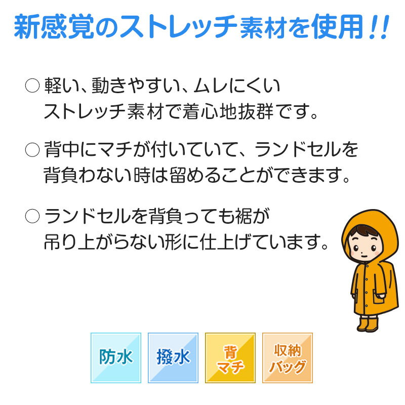 【11/25は抽選で最大100%Pバック】ランドセルコート レインコート 雨合羽 小学生 通学 子供 キッズ 身長105〜185cm対応 (合羽 カッパ ランドコート 子供用 ランドセル対応 雨具 ジュニア 小学校) (送料無料)【取寄せ】