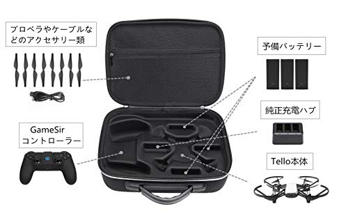 XBERSTAR DJI Tello ケース Gamesirコントローラー・純正充電器・バッテリー3個収納可能 バッグ キャリングケース プロペラなどの小物収納可能 携帯に便利