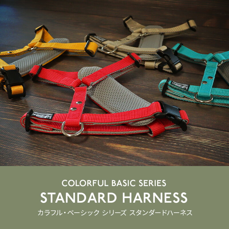 抜けない&脱げない 犬 ハーネス 胸パッド付き|優しくフィットして迷子防止も◎ 日本製 名入れ可 小型犬 中型犬 大型犬対応 おしゃれで快適 速乾素材で雨の日もOK すず工房 SUZUKOUBOU【カラフル・ベーシック スタンダードハーネス・胸パッド付】