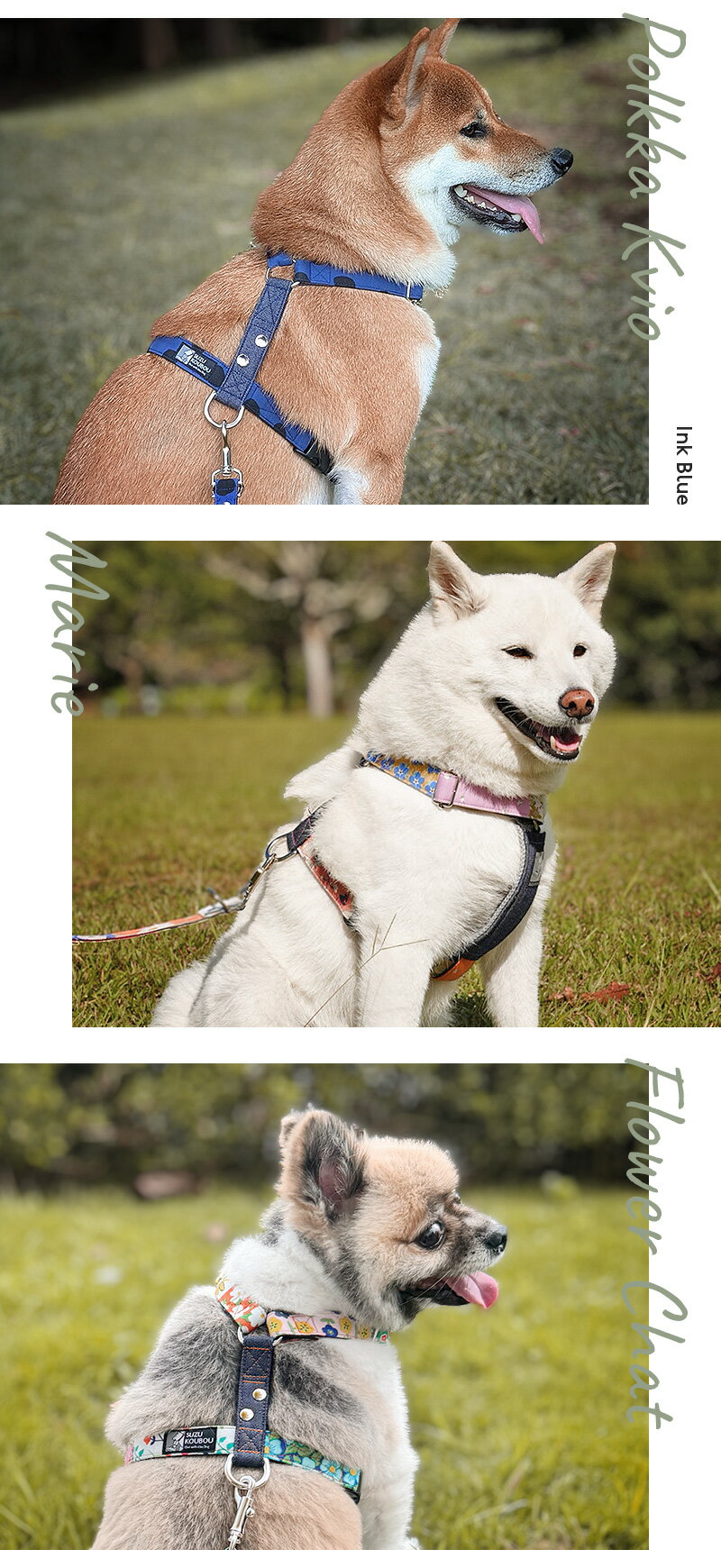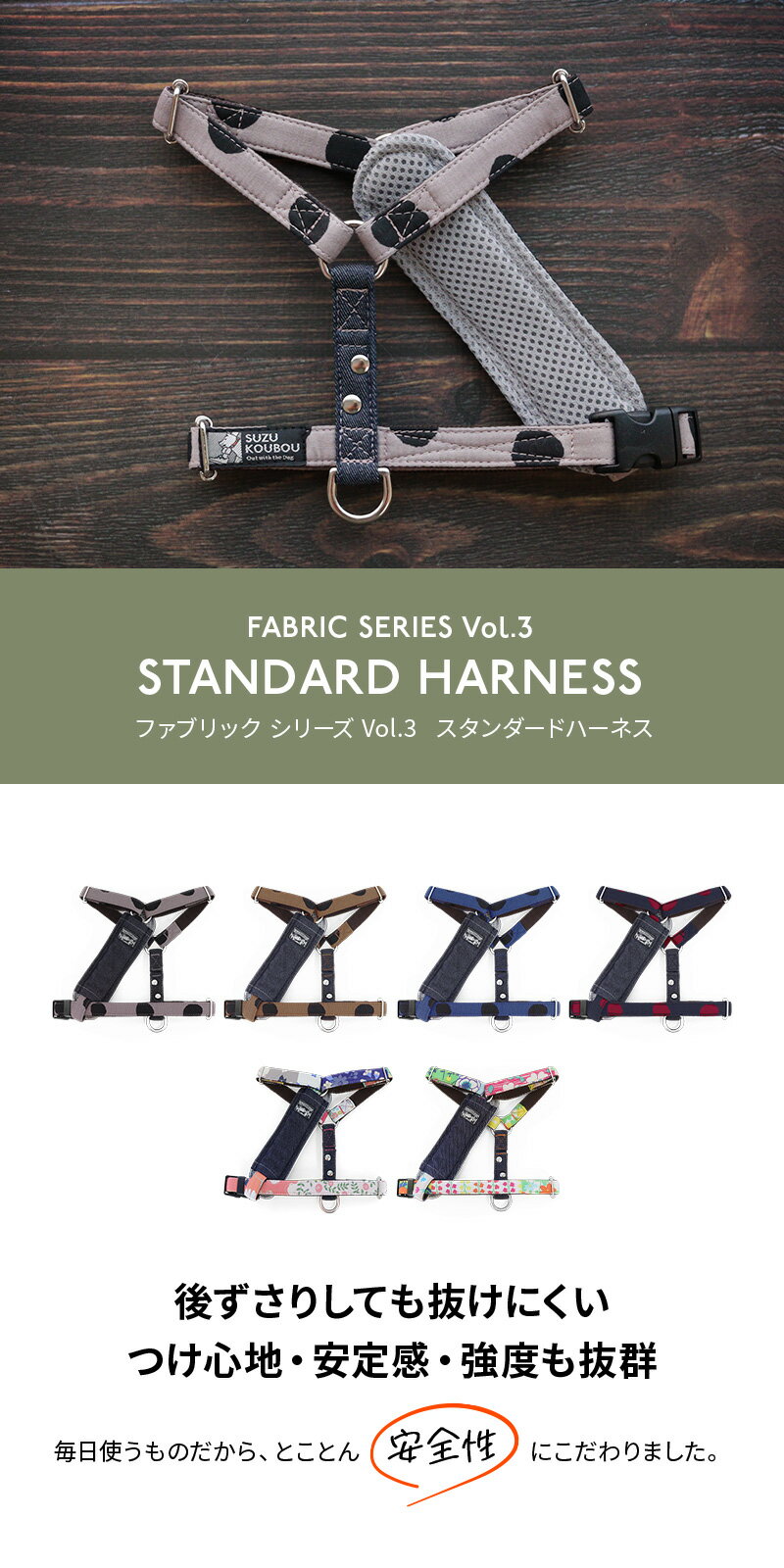 犬 ハーネス 抜けない 抜けにくい 脱げない 脱げにくい 迷子防止 小型犬 中型犬 大型犬 おしゃれ かわいい 名前 入れ 迷子札(別売) 北欧 水玉 ドット 花柄 すず首輪製作工房 すず工房 SUZUKOUBOU【ファブリックシリーズ Vol.3・スタンダードハーネス胸パッド付】