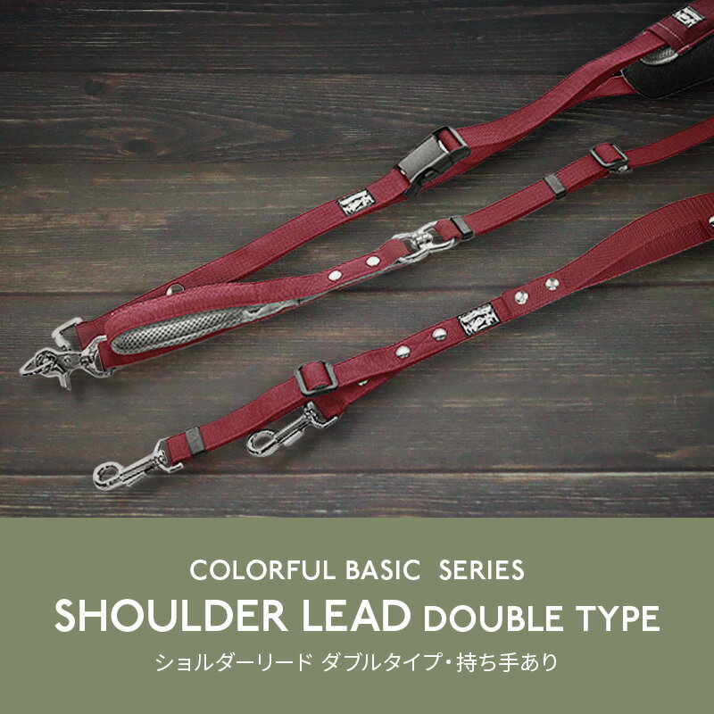 迷子にさせない二重ブロック!犬 ショルダーリード 肩掛けリード ハンズフリー 両手が自由 肩パッド付き 優れた耐久性 多頭 迷子防止 小型犬 中型犬 大型犬 日本製 すず工房 SUZUKOUBOUカラフル・ベーシック ショルダーリードセット【ダブルタイプ・持ち手あり】